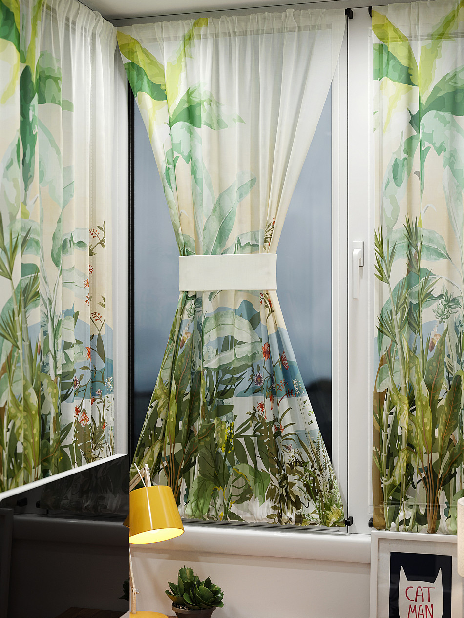 - Вуаль портьеры для кухни с принтом