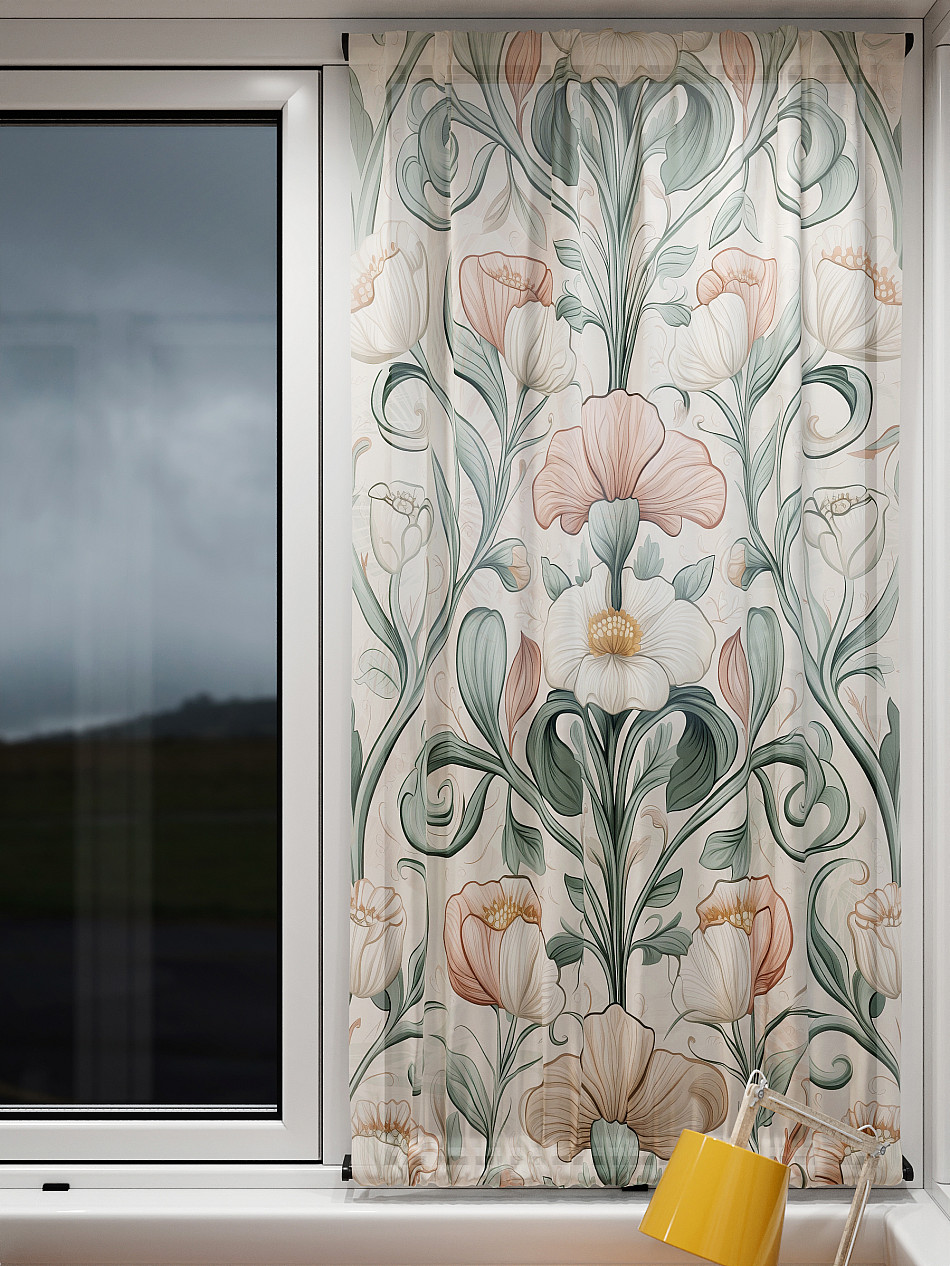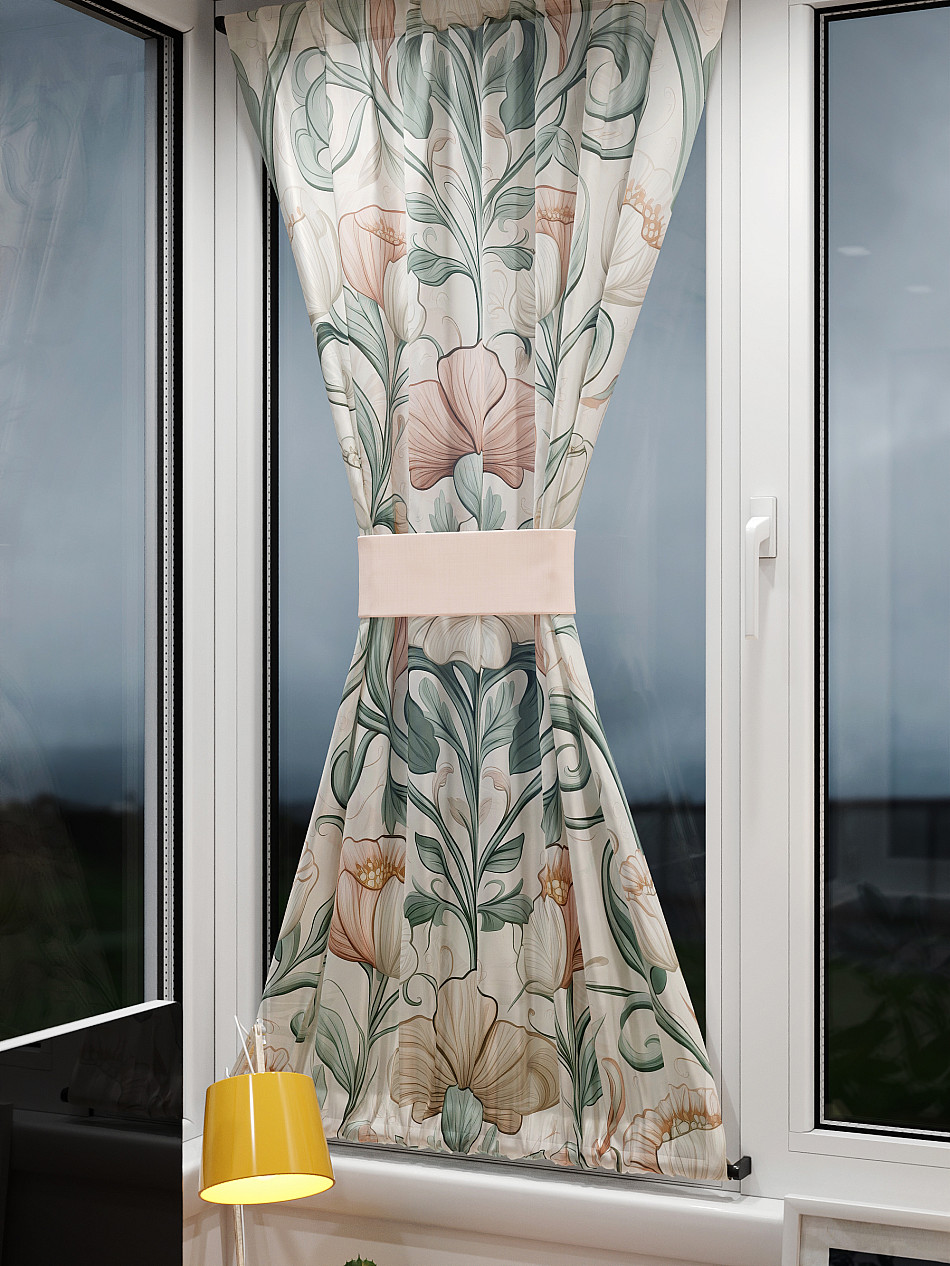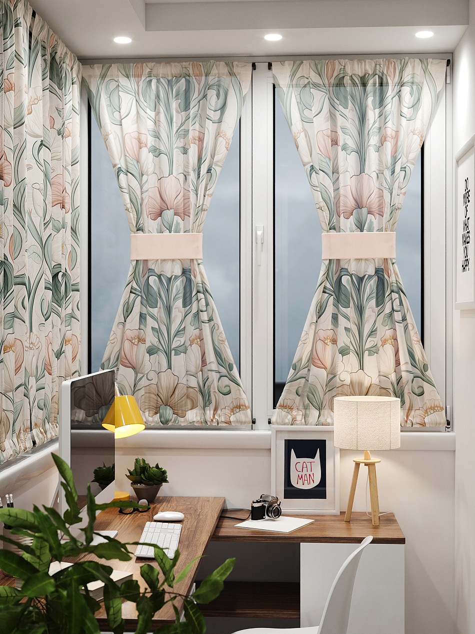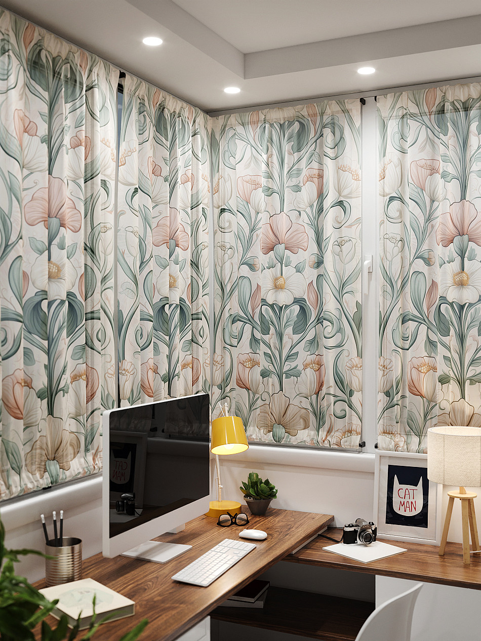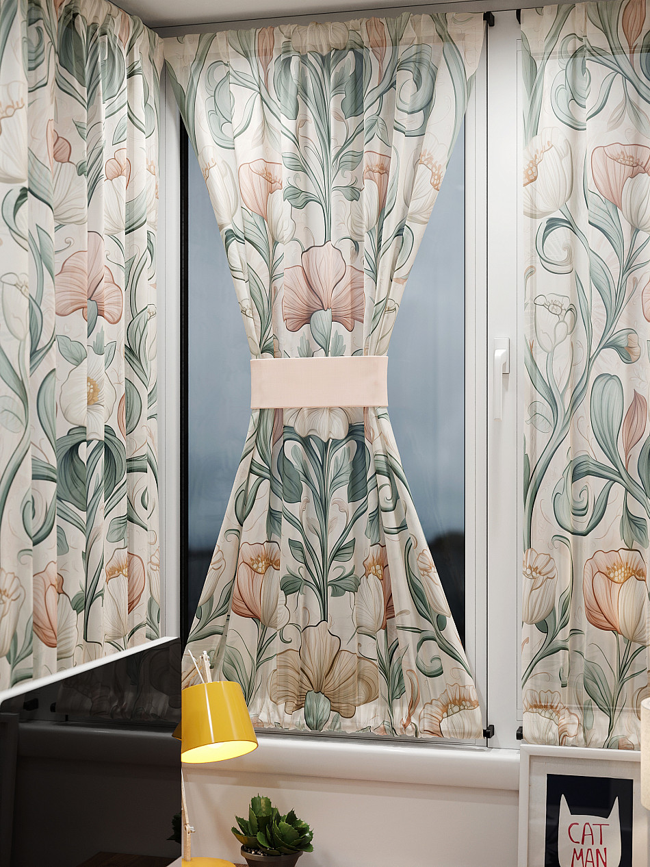 - Вуаль портьера для комнаты с принтом