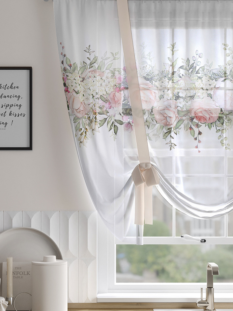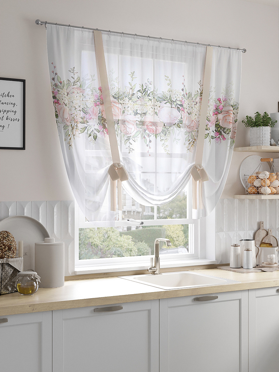 ВыбратьТюль 1 шт. Легкий, мягкий тюль из вуали оформлен фотопечатью, дополнен отделкой в виде декоративных завязок. Тюль имитирует римскую штору. Подъем и опускание осуществляется за счет декоративных лент. Вуаль с матовой полупрозрачной текстурой. Отличается особым шиком, идеально подходит для создания воздушных штор. Придает ощущение свежести, хорошо пропускает воздух. Ткань неприхотлива в уходе, хорошо стирается без разрушения волокон с течением времени за счет высокого кручения нитей.