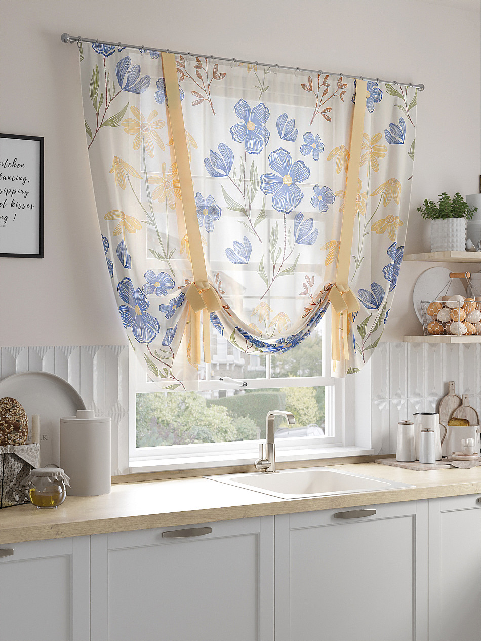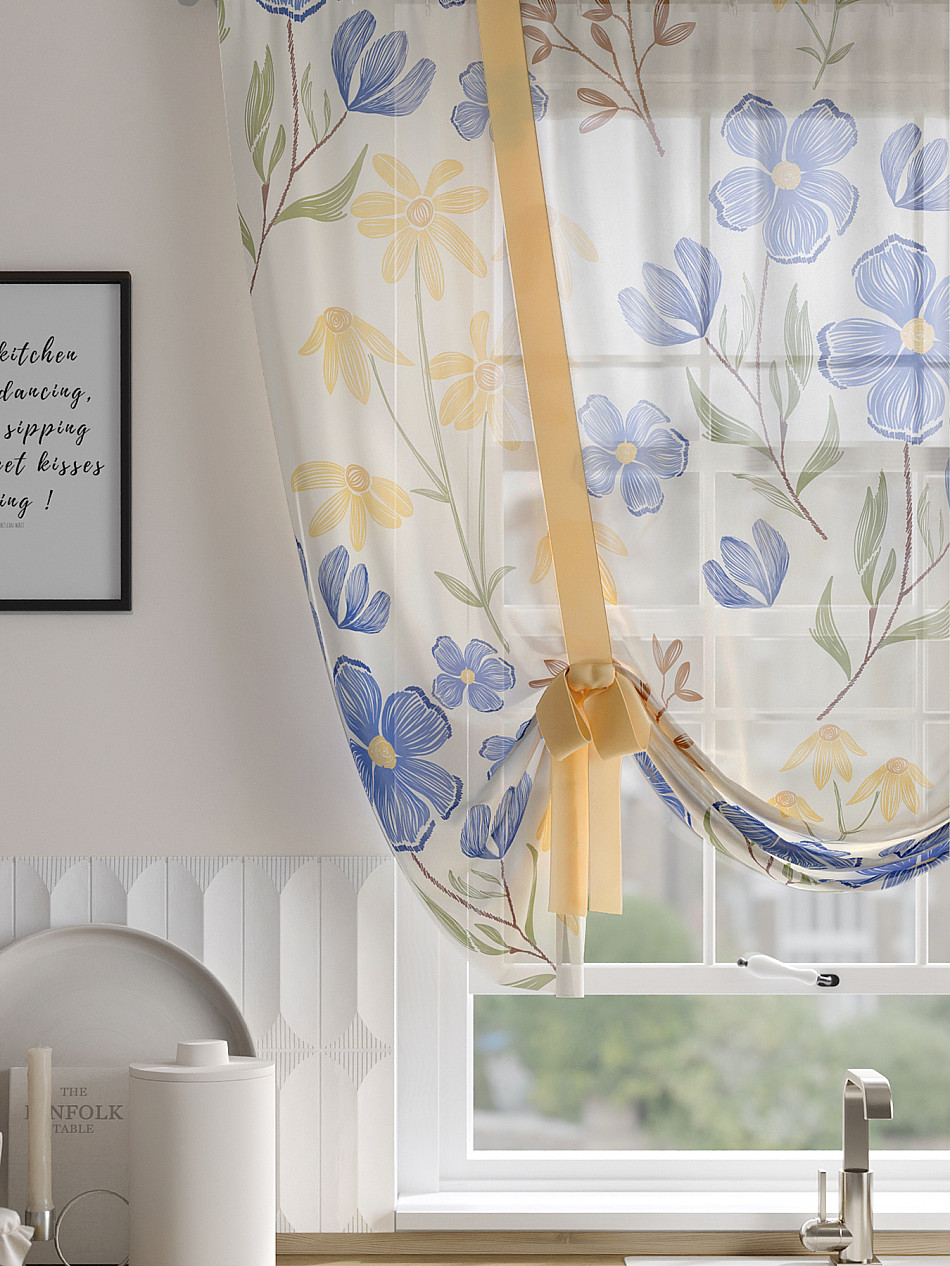 ВыбратьТюль 1 шт. Легкий, мягкий тюль из вуали оформлен фотопечатью, дополнен отделкой в виде декоративных завязок. Тюль имитирует римскую штору. Подъем и опускание осуществляется за счет декоративных лент. Вуаль с матовой полупрозрачной текстурой. Отличается особым шиком, идеально подходит для создания воздушных штор. Придает ощущение свежести, хорошо пропускает воздух. Ткань неприхотлива в уходе, хорошо стирается без разрушения волокон с течением времени за счет высокого кручения нитей.