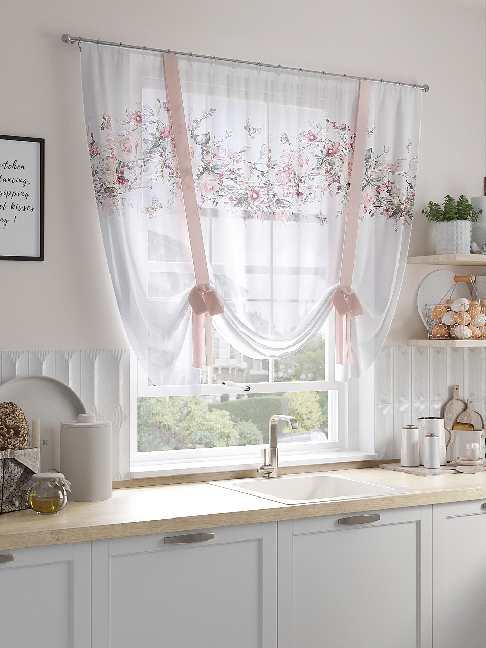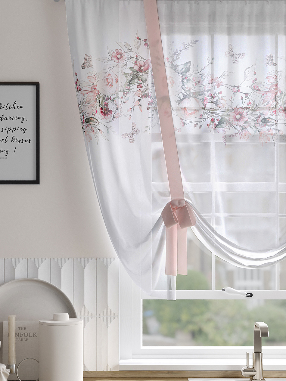 ВыбратьТюль 1 шт. Легкий, мягкий тюль из вуали оформлен фотопечатью, дополнен отделкой в виде декоративных завязок. Тюль имитирует римскую штору. Подъем и опускание осуществляется за счет декоративных лент. Вуаль с матовой полупрозрачной текстурой. Отличается особым шиком, идеально подходит для создания воздушных штор. Придает ощущение свежести, хорошо пропускает воздух. Ткань неприхотлива в уходе, хорошо стирается без разрушения волокон с течением времени за счет высокого кручения нитей.