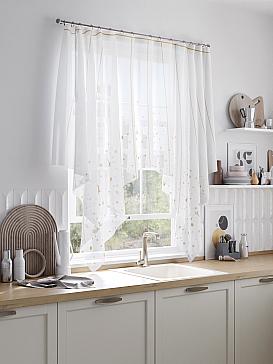 ВыбратьТюль 1 шт. Легкий, мягкий тюль из вуали с полукруглым нижним краем оформлен печатным рисунком. Благодаря такому крою на ткани образуется красивая аккуратная драпировка. Вуаль с матовой полупрозрачной текстурой. Отличается особым шиком, идеально подходит для создания воздушных штор. Печатный рисунок дает широкие возможности обновить интерьер фактически нет требуя ремонта за счет огромного выбора. Ткань неприхотлива в уходе, хорошо стирается без разрушения волокон с течением времени за счет высокого кручения нитей. Тюль арка отличное решение для кухни.