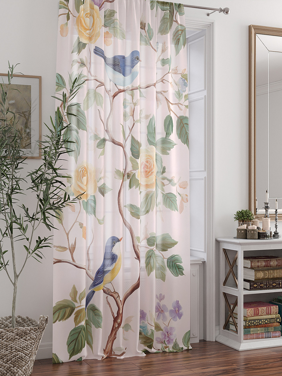 ВыбратьТюль 1 шт. Легкая основа (вуаль) оформлена фотопечатью. Вуаль с матовой полупрозрачной текстурой. Отличается особым шиком, идеально подходит для создания воздушных штор. Придает ощущение свежести, хорошо пропускает воздух. Ткань неприхотлива в уходе, хорошо стирается без разрушения волокон с течением времени за счет высокого кручения нитей.