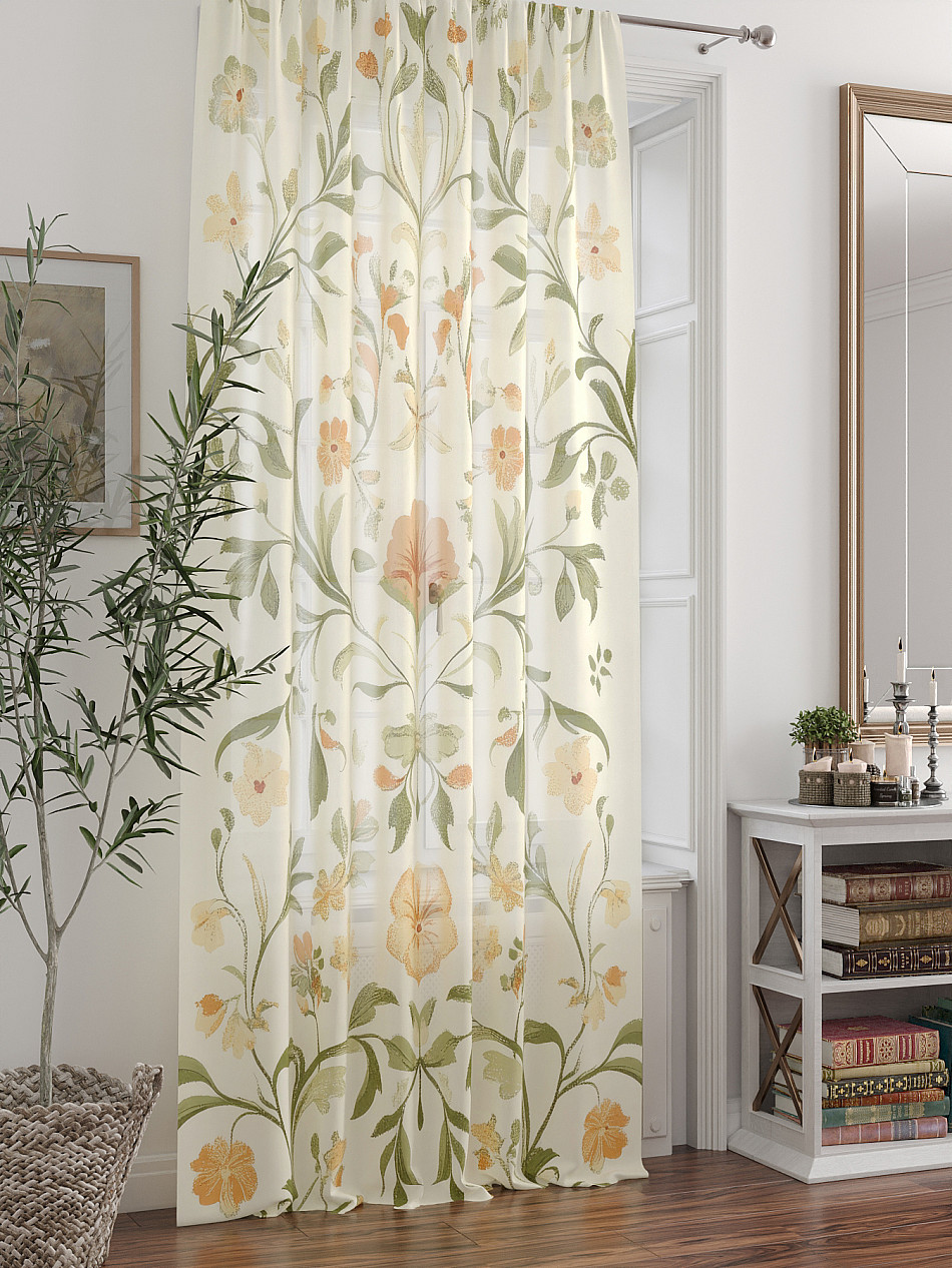 ВыбратьТюль 1 шт. Легкая основа (вуаль) оформлена фотопечатью. Вуаль с матовой полупрозрачной текстурой. Отличается особым шиком, идеально подходит для создания воздушных штор. Придает ощущение свежести, хорошо пропускает воздух. Ткань неприхотлива в уходе, хорошо стирается без разрушения волокон с течением времени за счет высокого кручения нитей.