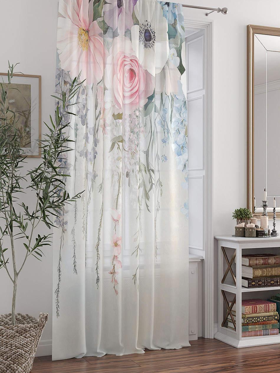 ВыбратьТюль 1 шт. Легкая основа (вуаль) оформлена фотопечатью. Вуаль с матовой полупрозрачной текстурой. Отличается особым шиком, идеально подходит для создания воздушных штор. Придает ощущение свежести, хорошо пропускает воздух. Ткань неприхотлива в уходе, хорошо стирается без разрушения волокон с течением времени за счет высокого кручения нитей.