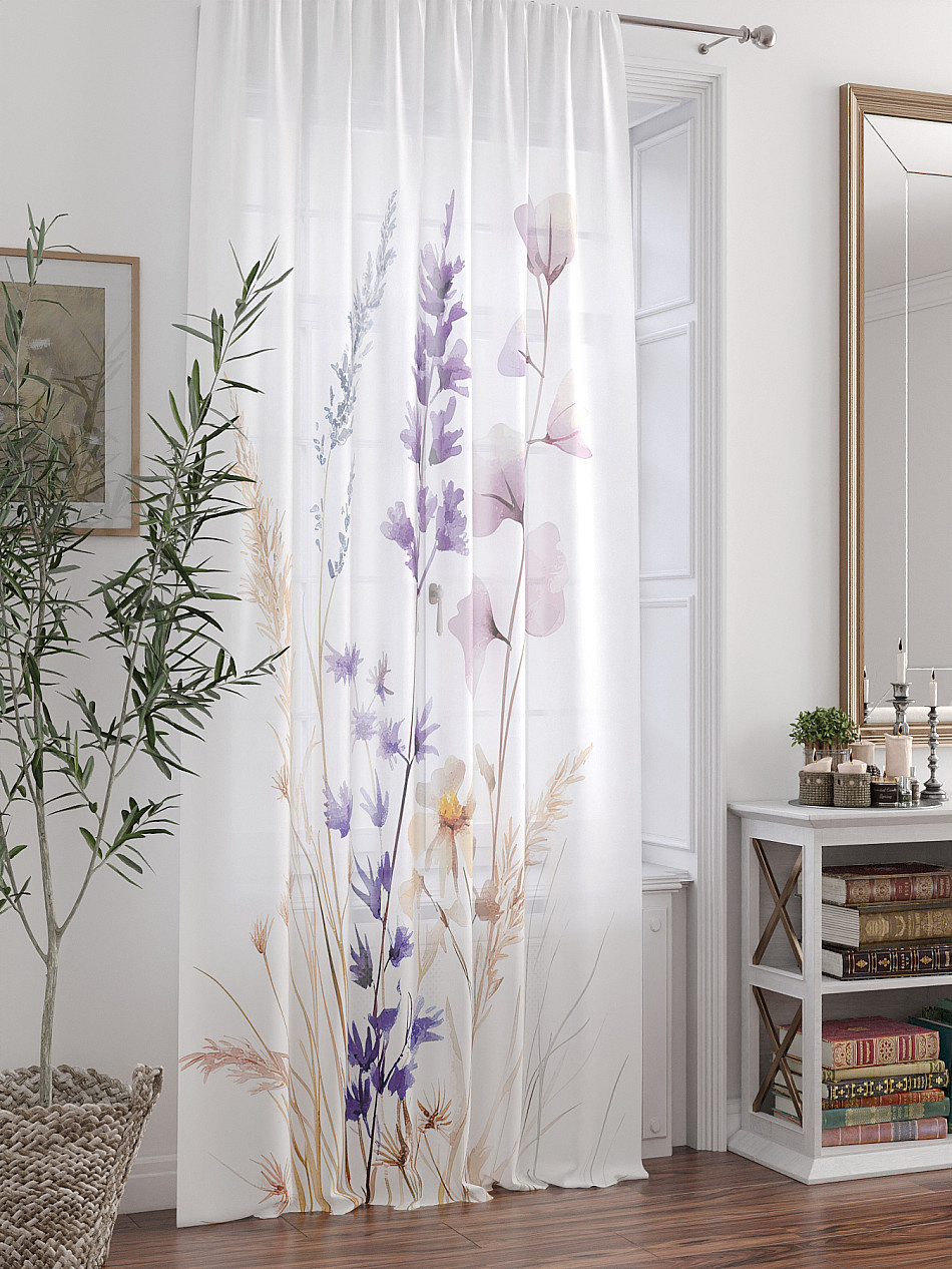 ВыбратьТюль 1 шт. Легкая основа (вуаль) оформлена фотопечатью. Вуаль с матовой полупрозрачной текстурой. Отличается особым шиком, идеально подходит для создания воздушных штор. Придает ощущение свежести, хорошо пропускает воздух. Ткань неприхотлива в уходе, хорошо стирается без разрушения волокон с течением времени за счет высокого кручения нитей.