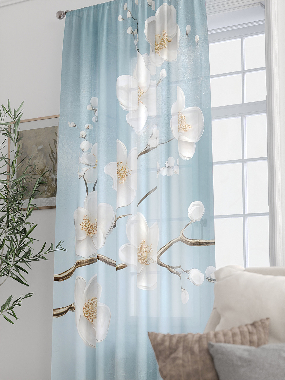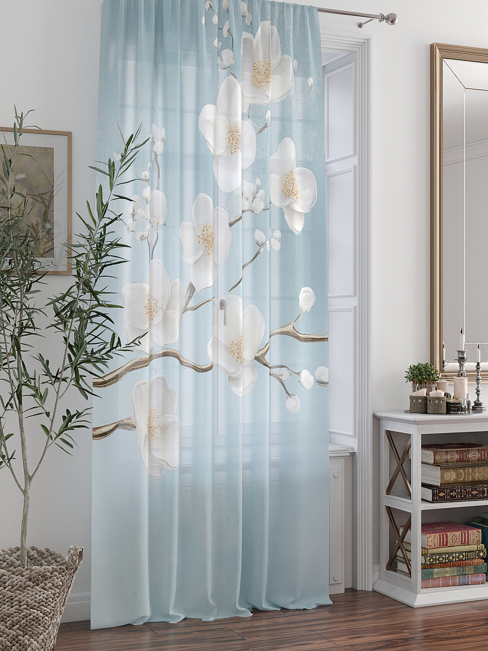 ВыбратьТюль 1 шт. Легкая основа (вуаль) оформлена фотопечатью. Вуаль с матовой полупрозрачной текстурой. Отличается особым шиком, идеально подходит для создания воздушных штор. Придает ощущение свежести, хорошо пропускает воздух. Ткань неприхотлива в уходе, хорошо стирается без разрушения волокон с течением времени за счет высокого кручения нитей.