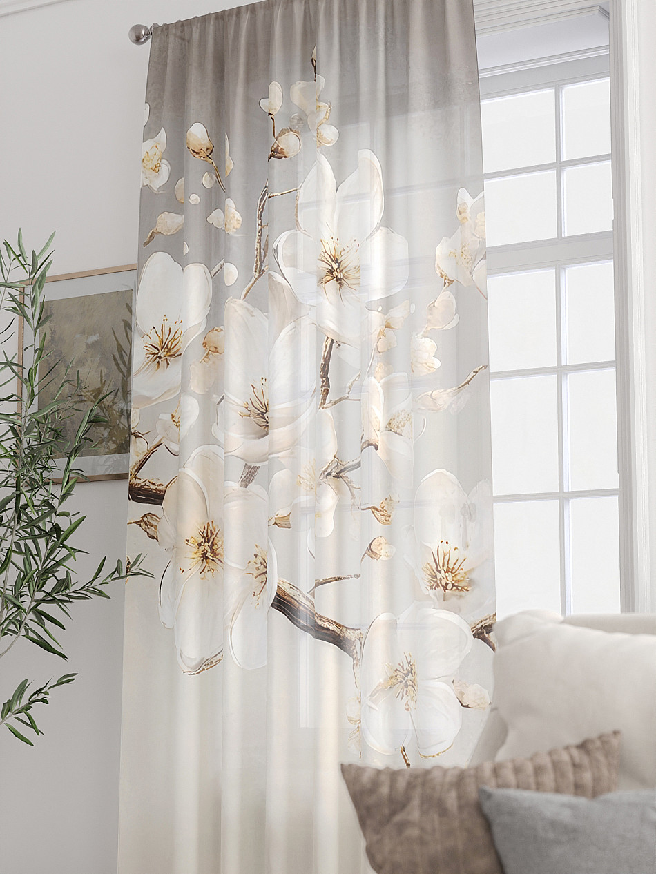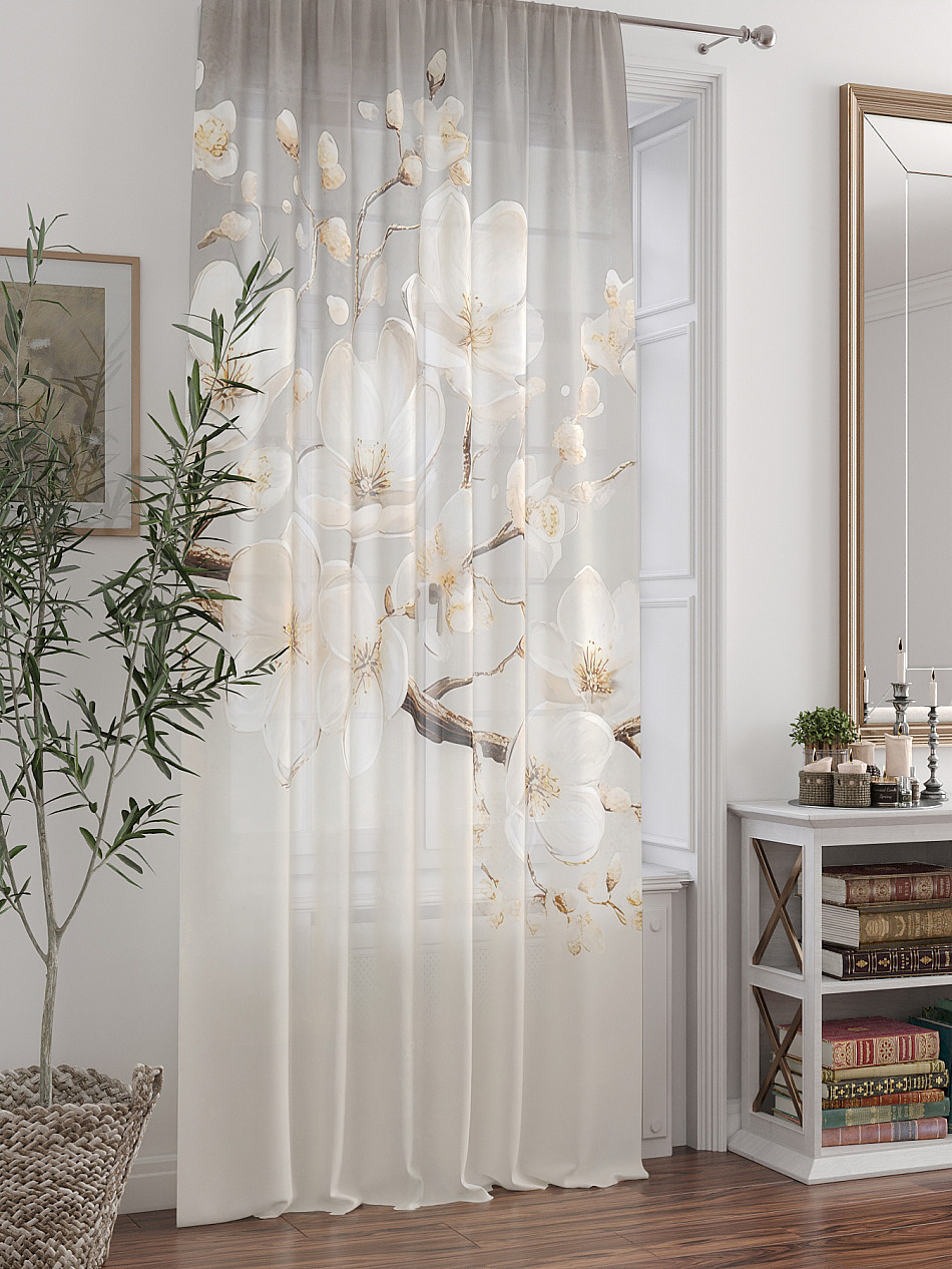 ВыбратьТюль 1 шт. Легкая основа (вуаль) оформлена фотопечатью. Вуаль с матовой полупрозрачной текстурой. Отличается особым шиком, идеально подходит для создания воздушных штор. Придает ощущение свежести, хорошо пропускает воздух. Ткань неприхотлива в уходе, хорошо стирается без разрушения волокон с течением времени за счет высокого кручения нитей.