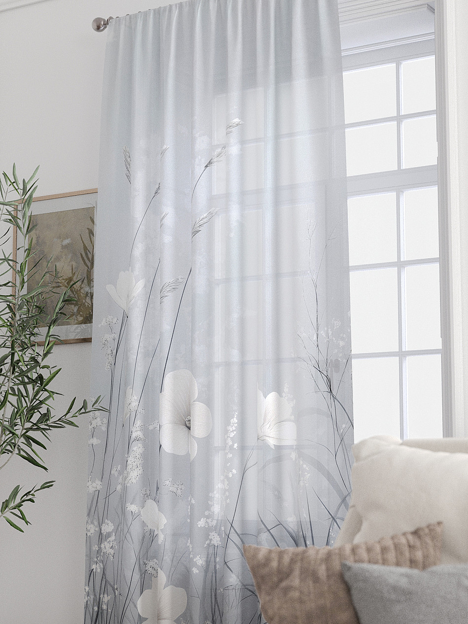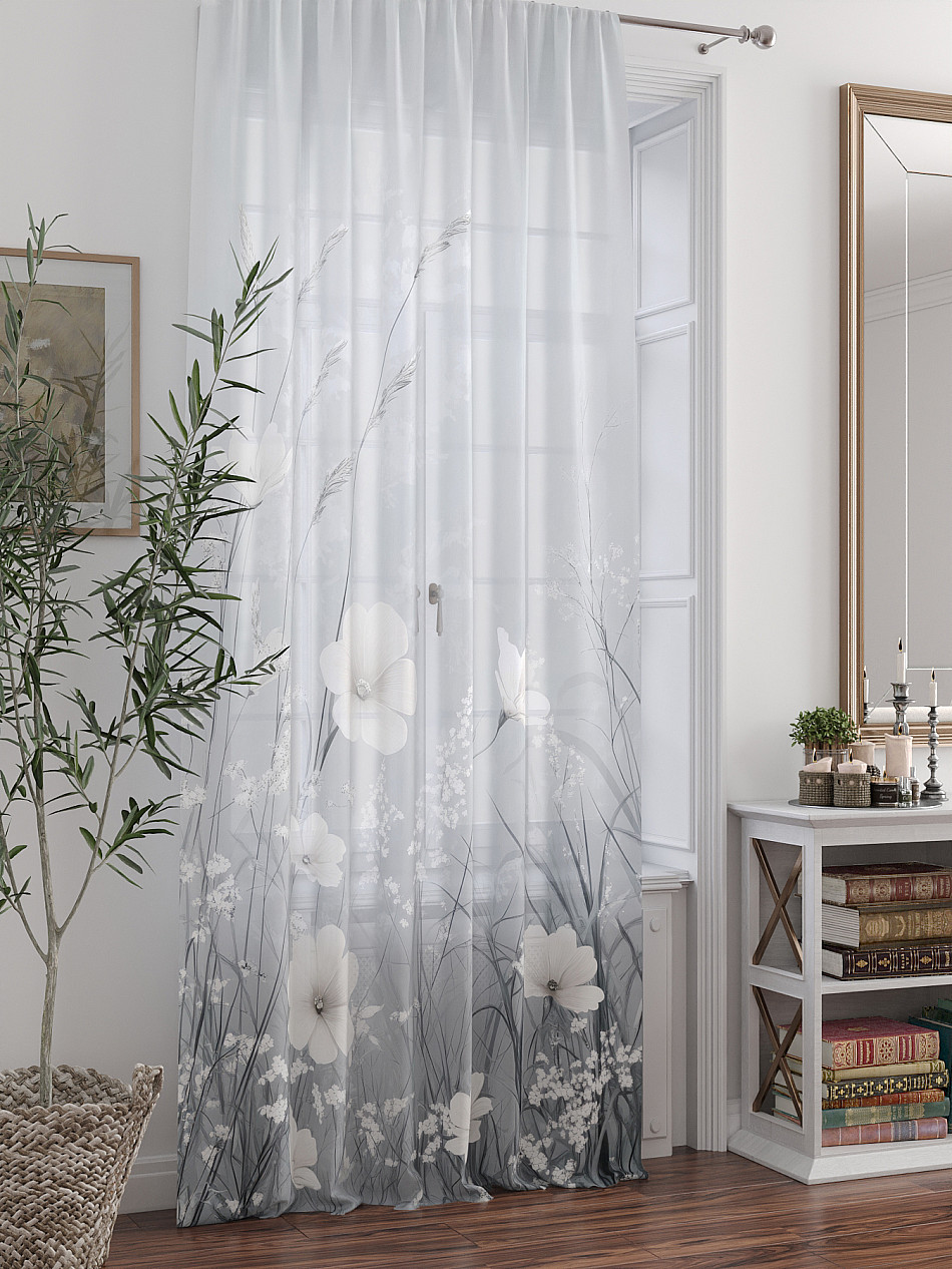 ВыбратьТюль 1 шт. Легкая основа (вуаль) оформлена фотопечатью. Вуаль с матовой полупрозрачной текстурой. Отличается особым шиком, идеально подходит для создания воздушных штор. Придает ощущение свежести, хорошо пропускает воздух. Ткань неприхотлива в уходе, хорошо стирается без разрушения волокон с течением времени за счет высокого кручения нитей.
