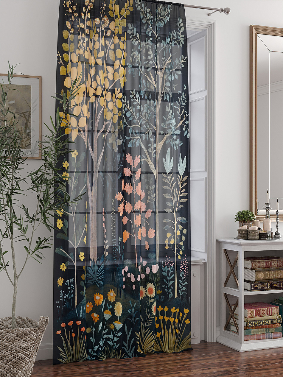 ВыбратьТюль 1 шт. Легкая основа (вуаль) оформлена фотопечатью. Вуаль с матовой полупрозрачной текстурой. Отличается особым шиком, идеально подходит для создания воздушных штор. Придает ощущение свежести, хорошо пропускает воздух. Ткань неприхотлива в уходе, хорошо стирается без разрушения волокон с течением времени за счет высокого кручения нитей.