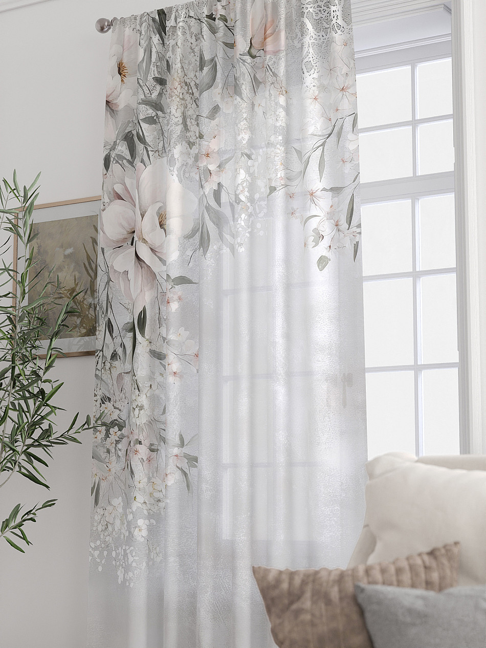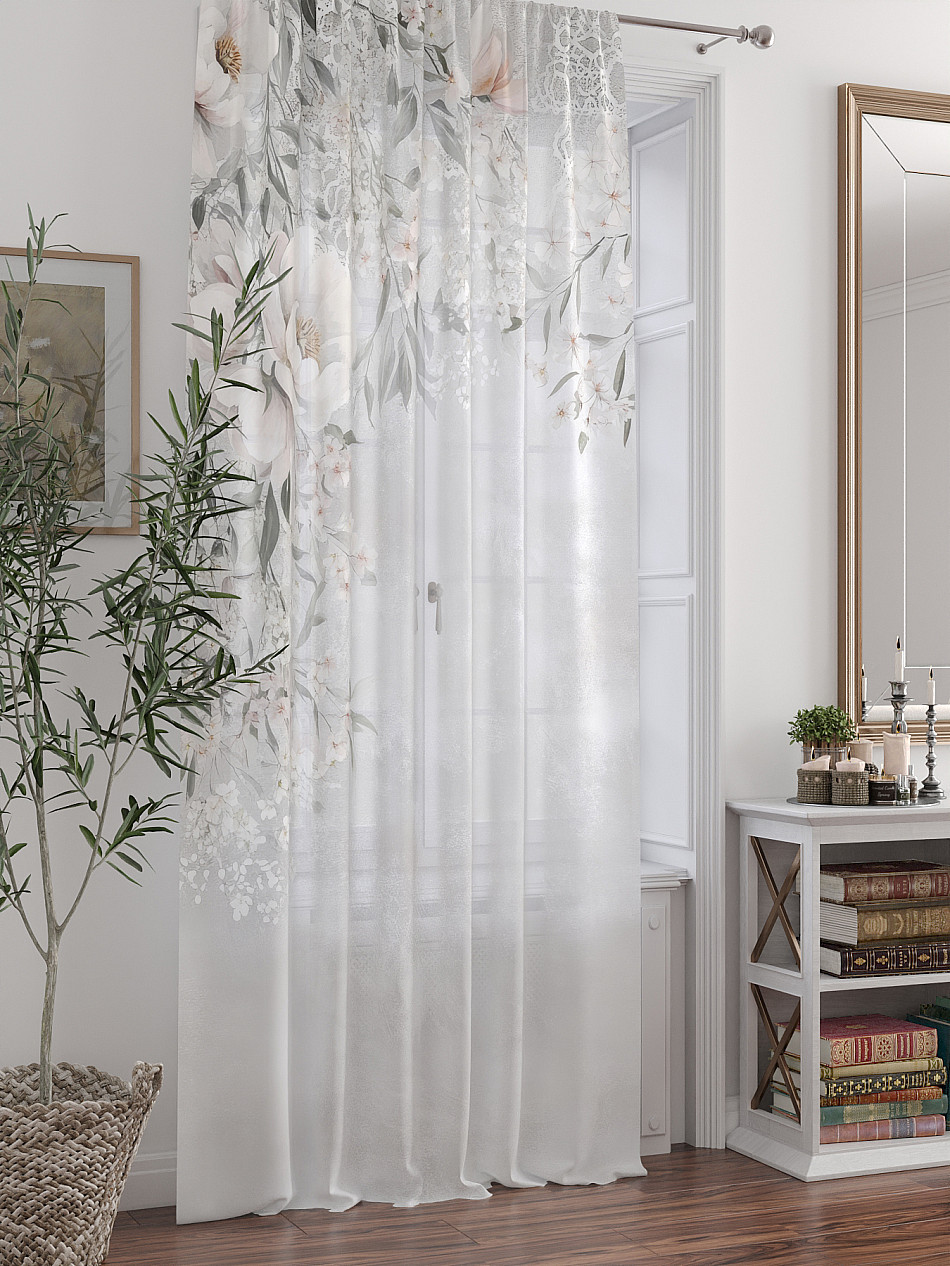 ВыбратьТюль 1 шт. Легкая основа (вуаль) оформлена фотопечатью. Вуаль с матовой полупрозрачной текстурой. Отличается особым шиком, идеально подходит для создания воздушных штор. Придает ощущение свежести, хорошо пропускает воздух. Ткань неприхотлива в уходе, хорошо стирается без разрушения волокон с течением времени за счет высокого кручения нитей.