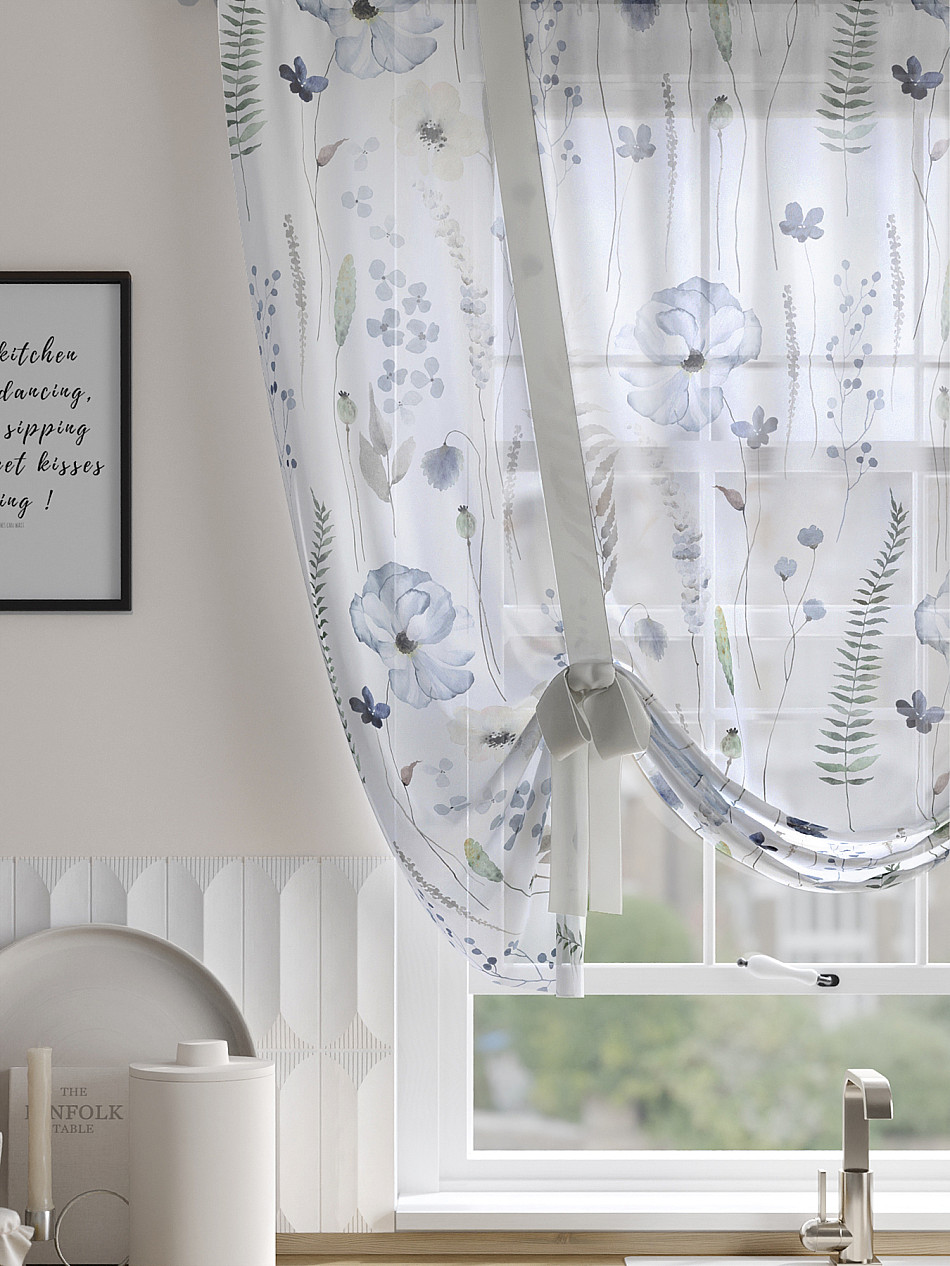 ВыбратьТюль 1 шт. Легкий, мягкий тюль из вуали оформлен фотопечатью, дополнен отделкой в виде декоративных завязок. Тюль имитирует римскую штору. Подъем и опускание осуществляется за счет декоративных лент. Вуаль с матовой полупрозрачной текстурой. Отличается особым шиком, идеально подходит для создания воздушных штор. Придает ощущение свежести, хорошо пропускает воздух. Ткань неприхотлива в уходе, хорошо стирается без разрушения волокон с течением времени за счет высокого кручения нитей.