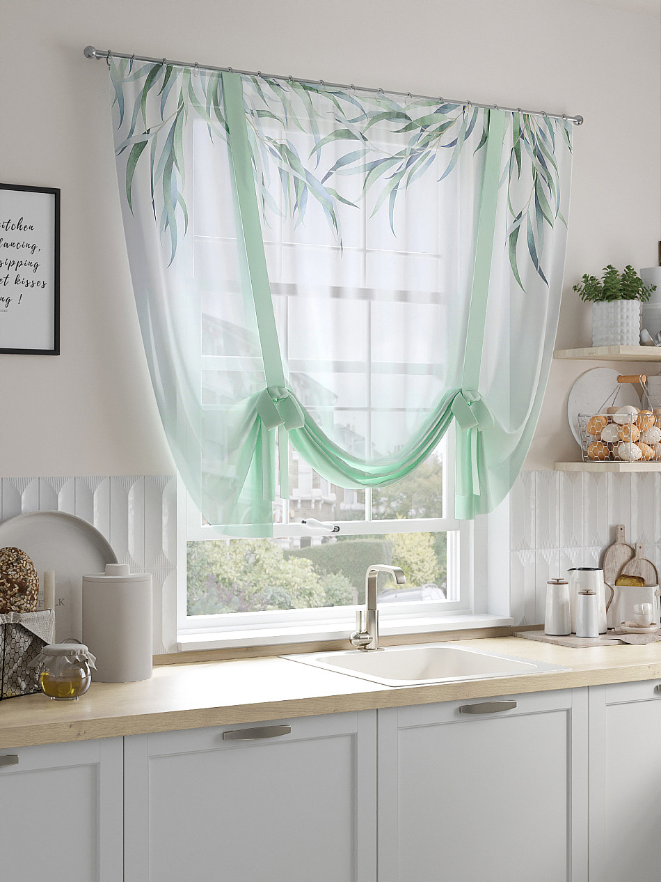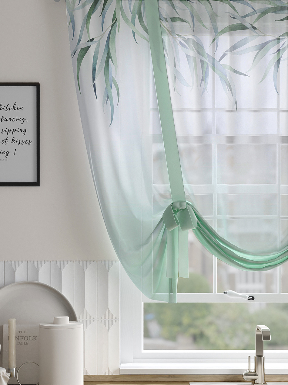 ВыбратьТюль 1 шт. Легкий, мягкий тюль из вуали оформлен фотопечатью, дополнен отделкой в виде декоративных завязок. Тюль имитирует римскую штору. Подъем и опускание осуществляется за счет декоративных лент. Вуаль с матовой полупрозрачной текстурой. Отличается особым шиком, идеально подходит для создания воздушных штор. Придает ощущение свежести, хорошо пропускает воздух. Ткань неприхотлива в уходе, хорошо стирается без разрушения волокон с течением времени за счет высокого кручения нитей.