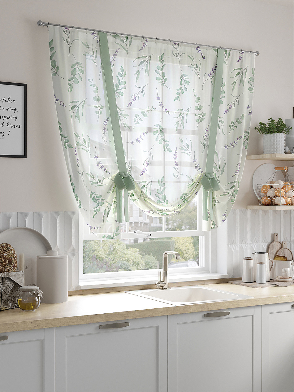ВыбратьТюль 1 шт. Легкий, мягкий тюль из вуали оформлен фотопечатью, дополнен отделкой в виде декоративных завязок. Тюль имитирует римскую штору. Подъем и опускание осуществляется за счет декоративных лент. Вуаль с матовой полупрозрачной текстурой. Отличается особым шиком, идеально подходит для создания воздушных штор. Придает ощущение свежести, хорошо пропускает воздух. Ткань неприхотлива в уходе, хорошо стирается без разрушения волокон с течением времени за счет высокого кручения нитей.