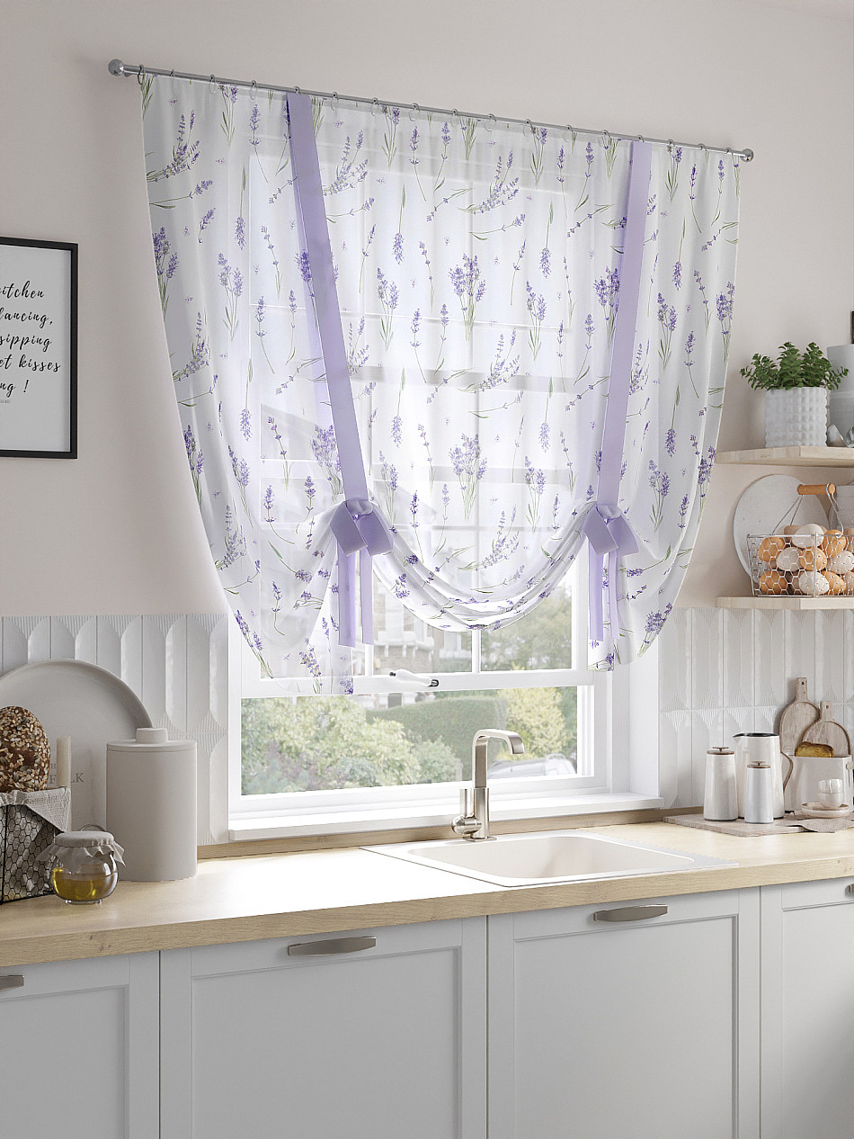 ВыбратьТюль 1 шт. Легкий, мягкий тюль из вуали оформлен фотопечатью, дополнен отделкой в виде декоративных завязок. Тюль имитирует римскую штору. Подъем и опускание осуществляется за счет декоративных лент. Вуаль с матовой полупрозрачной текстурой. Отличается особым шиком, идеально подходит для создания воздушных штор. Придает ощущение свежести, хорошо пропускает воздух. Ткань неприхотлива в уходе, хорошо стирается без разрушения волокон с течением времени за счет высокого кручения нитей.