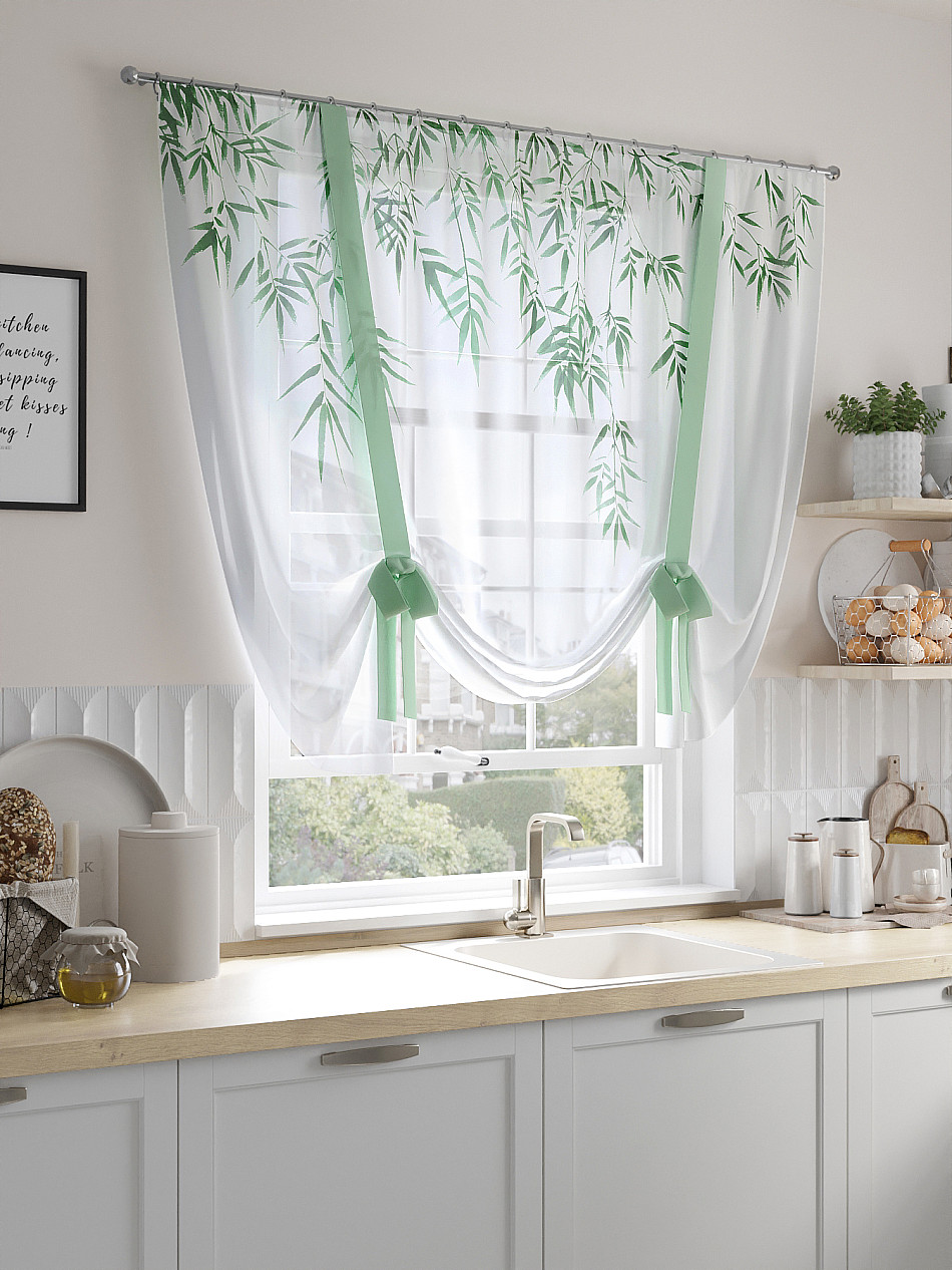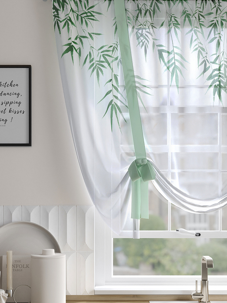 ВыбратьТюль 1 шт. Легкий, мягкий тюль из вуали оформлен фотопечатью, дополнен отделкой в виде декоративных завязок. Тюль имитирует римскую штору. Подъем и опускание осуществляется за счет декоративных лент. Вуаль с матовой полупрозрачной текстурой. Отличается особым шиком, идеально подходит для создания воздушных штор. Придает ощущение свежести, хорошо пропускает воздух. Ткань неприхотлива в уходе, хорошо стирается без разрушения волокон с течением времени за счет высокого кручения нитей.