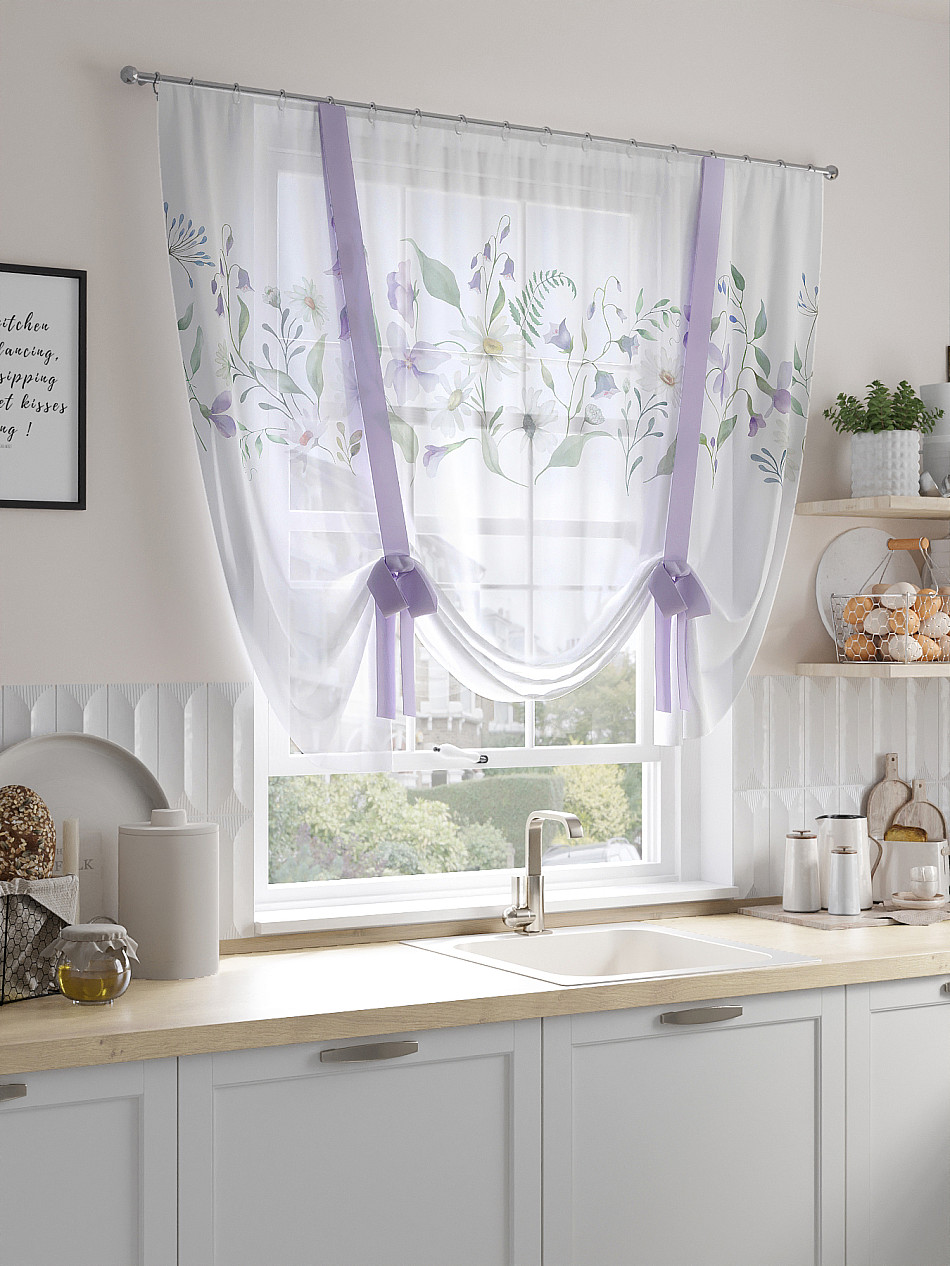 ВыбратьТюль 1 шт. Легкий, мягкий тюль из вуали оформлен фотопечатью, дополнен отделкой в виде декоративных завязок. Тюль имитирует римскую штору. Подъем и опускание осуществляется за счет декоративных лент. Вуаль с матовой полупрозрачной текстурой. Отличается особым шиком, идеально подходит для создания воздушных штор. Придает ощущение свежести, хорошо пропускает воздух. Ткань неприхотлива в уходе, хорошо стирается без разрушения волокон с течением времени за счет высокого кручения нитей.