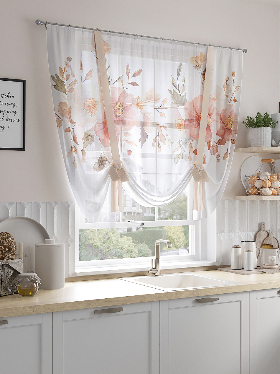 ВыбратьТюль 1 шт. Легкий, мягкий тюль из вуали оформлен фотопечатью, дополнен отделкой в виде декоративных завязок. Тюль имитирует римскую штору. Подъем и опускание осуществляется за счет декоративных лент. Вуаль с матовой полупрозрачной текстурой. Отличается особым шиком, идеально подходит для создания воздушных штор. Придает ощущение свежести, хорошо пропускает воздух. Ткань неприхотлива в уходе, хорошо стирается без разрушения волокон с течением времени за счет высокого кручения нитей.
