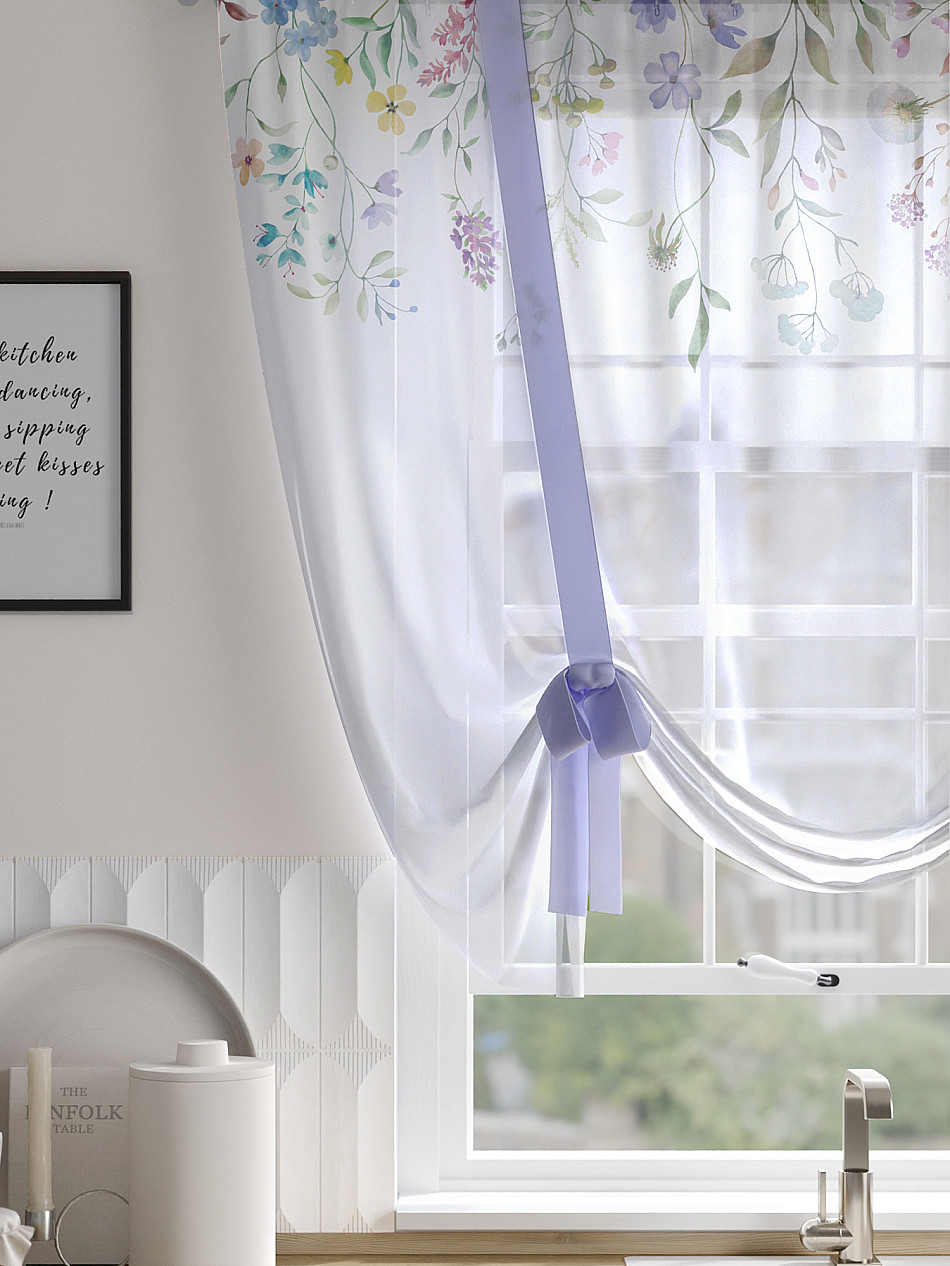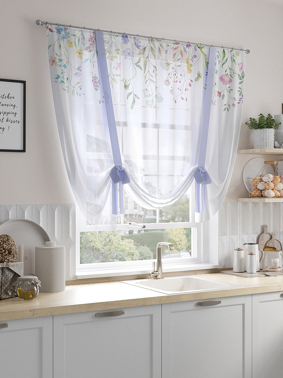ВыбратьТюль 1 шт. Легкий, мягкий тюль из вуали оформлен фотопечатью, дополнен отделкой в виде декоративных завязок. Тюль имитирует римскую штору. Подъем и опускание осуществляется за счет декоративных лент. Вуаль с матовой полупрозрачной текстурой. Отличается особым шиком, идеально подходит для создания воздушных штор. Придает ощущение свежести, хорошо пропускает воздух. Ткань неприхотлива в уходе, хорошо стирается без разрушения волокон с течением времени за счет высокого кручения нитей.