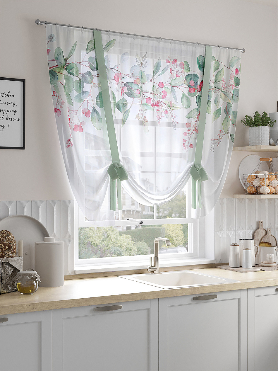 ВыбратьТюль 1 шт. Легкий, мягкий тюль из вуали оформлен фотопечатью, дополнен отделкой в виде декоративных завязок. Тюль имитирует римскую штору. Подъем и опускание осуществляется за счет декоративных лент. Вуаль с матовой полупрозрачной текстурой. Отличается особым шиком, идеально подходит для создания воздушных штор. Придает ощущение свежести, хорошо пропускает воздух. Ткань неприхотлива в уходе, хорошо стирается без разрушения волокон с течением времени за счет высокого кручения нитей.