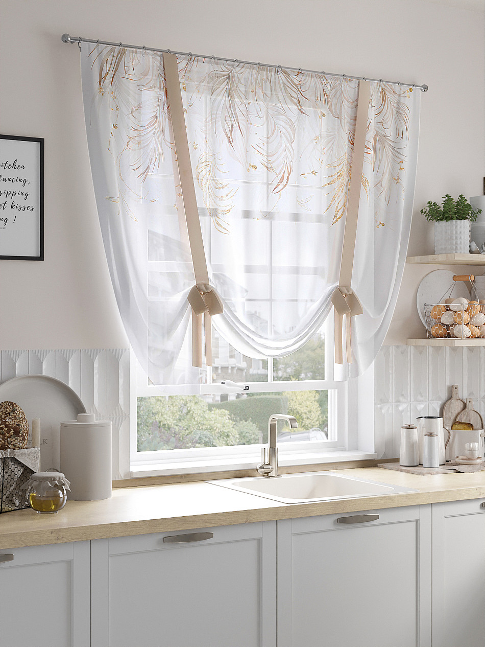 ВыбратьТюль 1 шт. Легкий, мягкий тюль из вуали оформлен фотопечатью, дополнен отделкой в виде декоративных завязок. Тюль имитирует римскую штору. Подъем и опускание осуществляется за счет декоративных лент. Вуаль с матовой полупрозрачной текстурой. Отличается особым шиком, идеально подходит для создания воздушных штор. Придает ощущение свежести, хорошо пропускает воздух. Ткань неприхотлива в уходе, хорошо стирается без разрушения волокон с течением времени за счет высокого кручения нитей.
