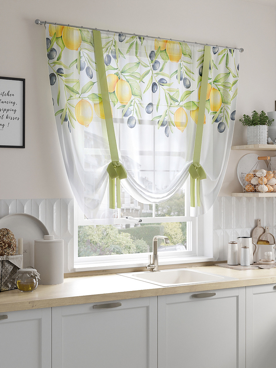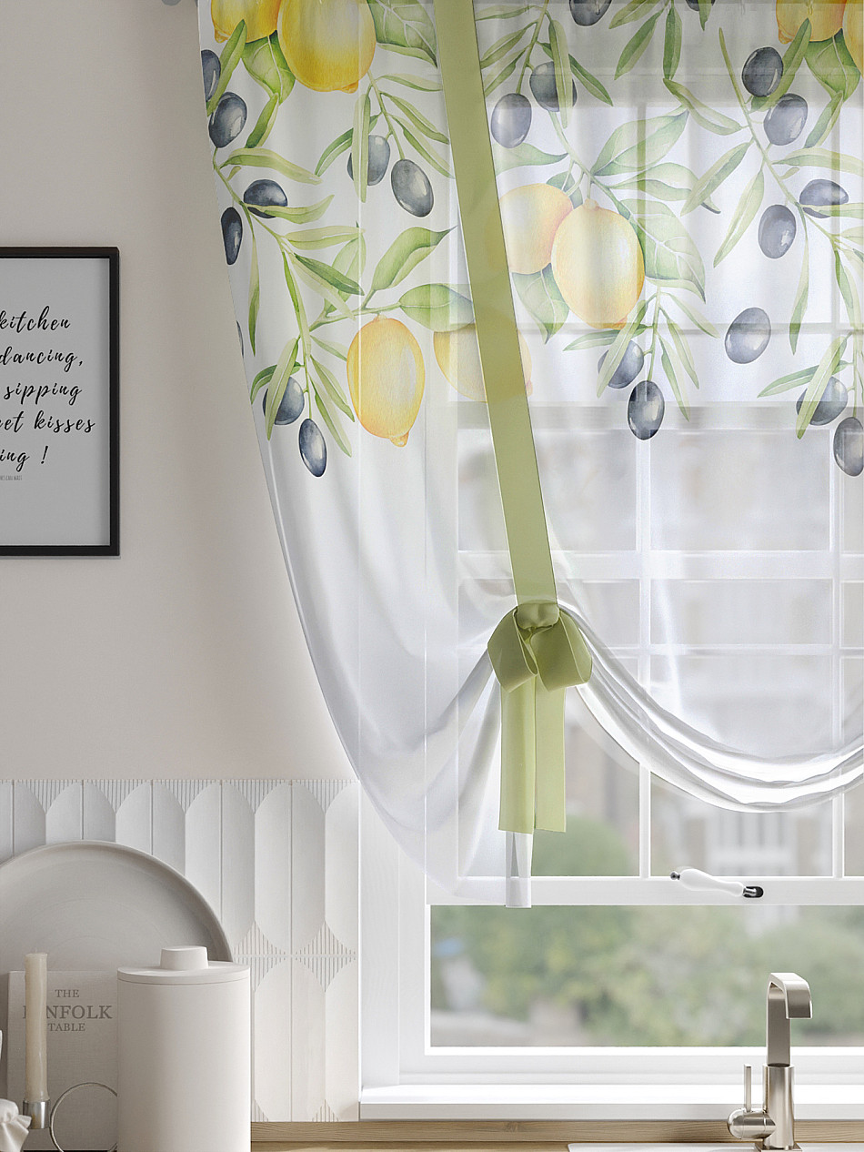 ВыбратьТюль 1 шт. Легкий, мягкий тюль из вуали оформлен фотопечатью, дополнен отделкой в виде декоративных завязок. Тюль имитирует римскую штору. Подъем и опускание осуществляется за счет декоративных лент. Вуаль с матовой полупрозрачной текстурой. Отличается особым шиком, идеально подходит для создания воздушных штор. Придает ощущение свежести, хорошо пропускает воздух. Ткань неприхотлива в уходе, хорошо стирается без разрушения волокон с течением времени за счет высокого кручения нитей.