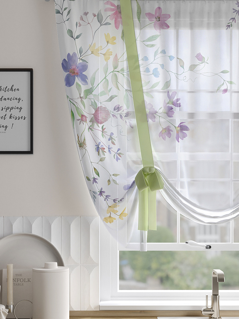 ВыбратьТюль 1 шт. Легкий, мягкий тюль из вуали оформлен фотопечатью, дополнен отделкой в виде декоративных завязок. Тюль имитирует римскую штору. Подъем и опускание осуществляется за счет декоративных лент. Вуаль с матовой полупрозрачной текстурой. Отличается особым шиком, идеально подходит для создания воздушных штор. Придает ощущение свежести, хорошо пропускает воздух. Ткань неприхотлива в уходе, хорошо стирается без разрушения волокон с течением времени за счет высокого кручения нитей.