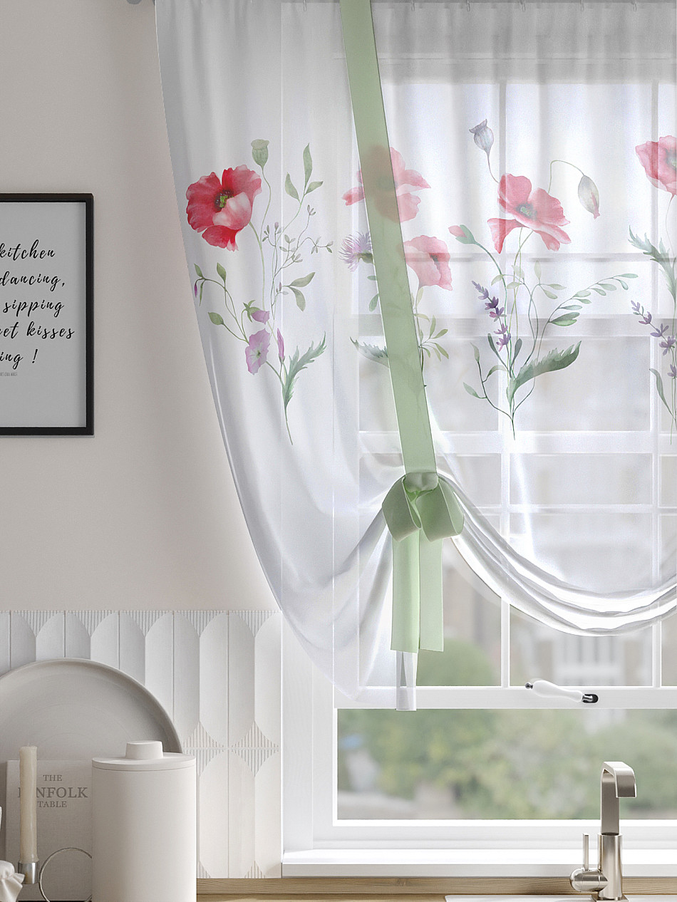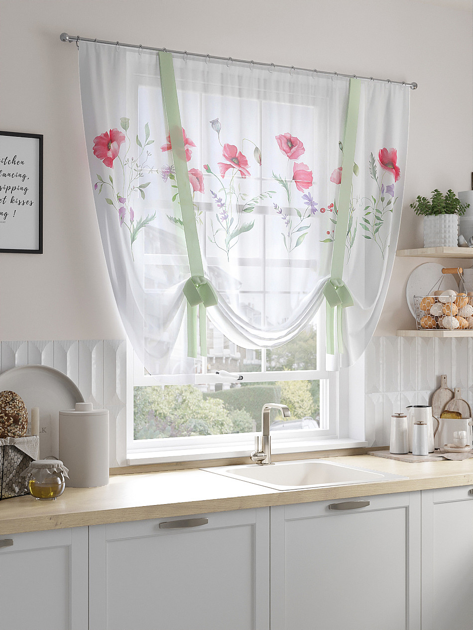 ВыбратьТюль 1 шт. Легкий, мягкий тюль из вуали оформлен фотопечатью, дополнен отделкой в виде декоративных завязок. Тюль имитирует римскую штору. Подъем и опускание осуществляется за счет декоративных лент. Вуаль с матовой полупрозрачной текстурой. Отличается особым шиком, идеально подходит для создания воздушных штор. Придает ощущение свежести, хорошо пропускает воздух. Ткань неприхотлива в уходе, хорошо стирается без разрушения волокон с течением времени за счет высокого кручения нитей.