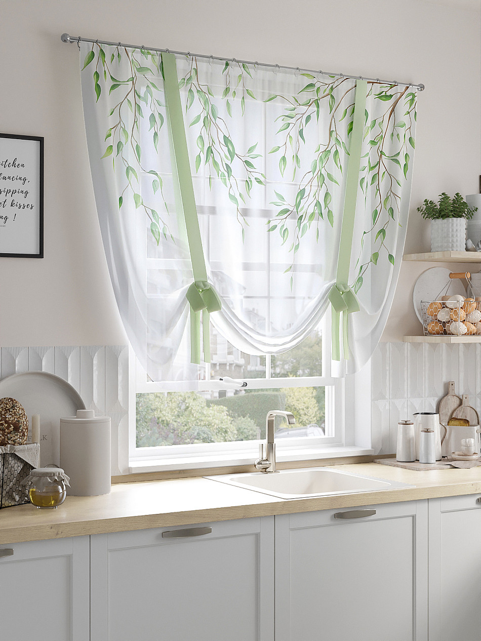 ВыбратьТюль 1 шт. Легкий, мягкий тюль из вуали оформлен фотопечатью, дополнен отделкой в виде декоративных завязок. Тюль имитирует римскую штору. Подъем и опускание осуществляется за счет декоративных лент. Вуаль с матовой полупрозрачной текстурой. Отличается особым шиком, идеально подходит для создания воздушных штор. Придает ощущение свежести, хорошо пропускает воздух. Ткань неприхотлива в уходе, хорошо стирается без разрушения волокон с течением времени за счет высокого кручения нитей.