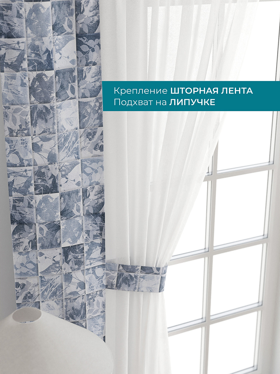 Декоративные подхваты 38х260 см — 2 шт.; Тюль 150х260 см — 2 шт. ( Изменить высоту) Крепление: шторная лента (крючки), кулиска Подробнее