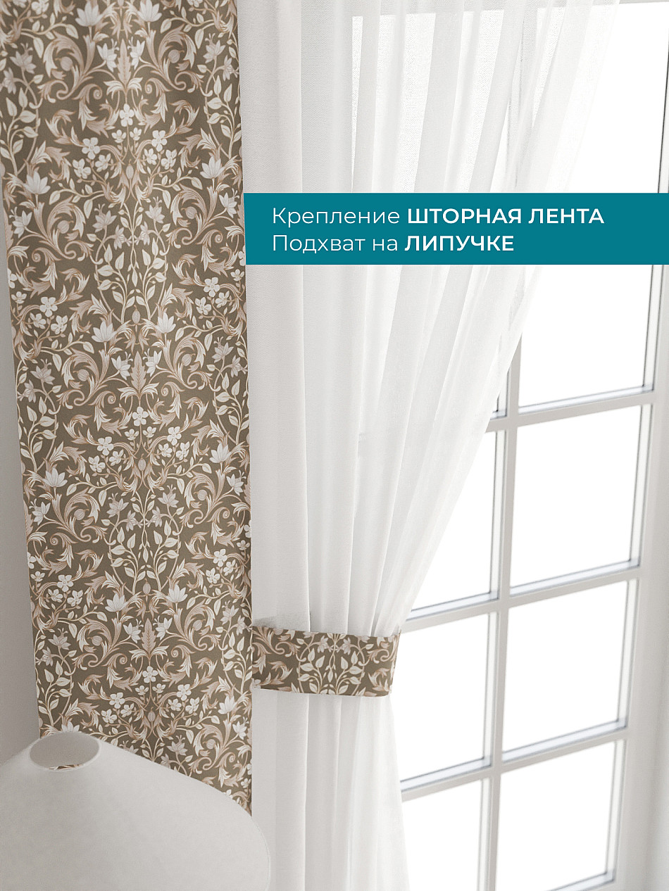 Декоративные подхваты 38х260 см — 2 шт.; Тюль 150х260 см — 2 шт. ( Изменить высоту) Крепление: шторная лента (крючки), кулиска Подробнее