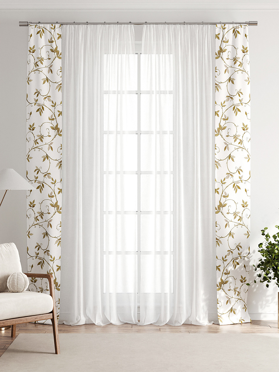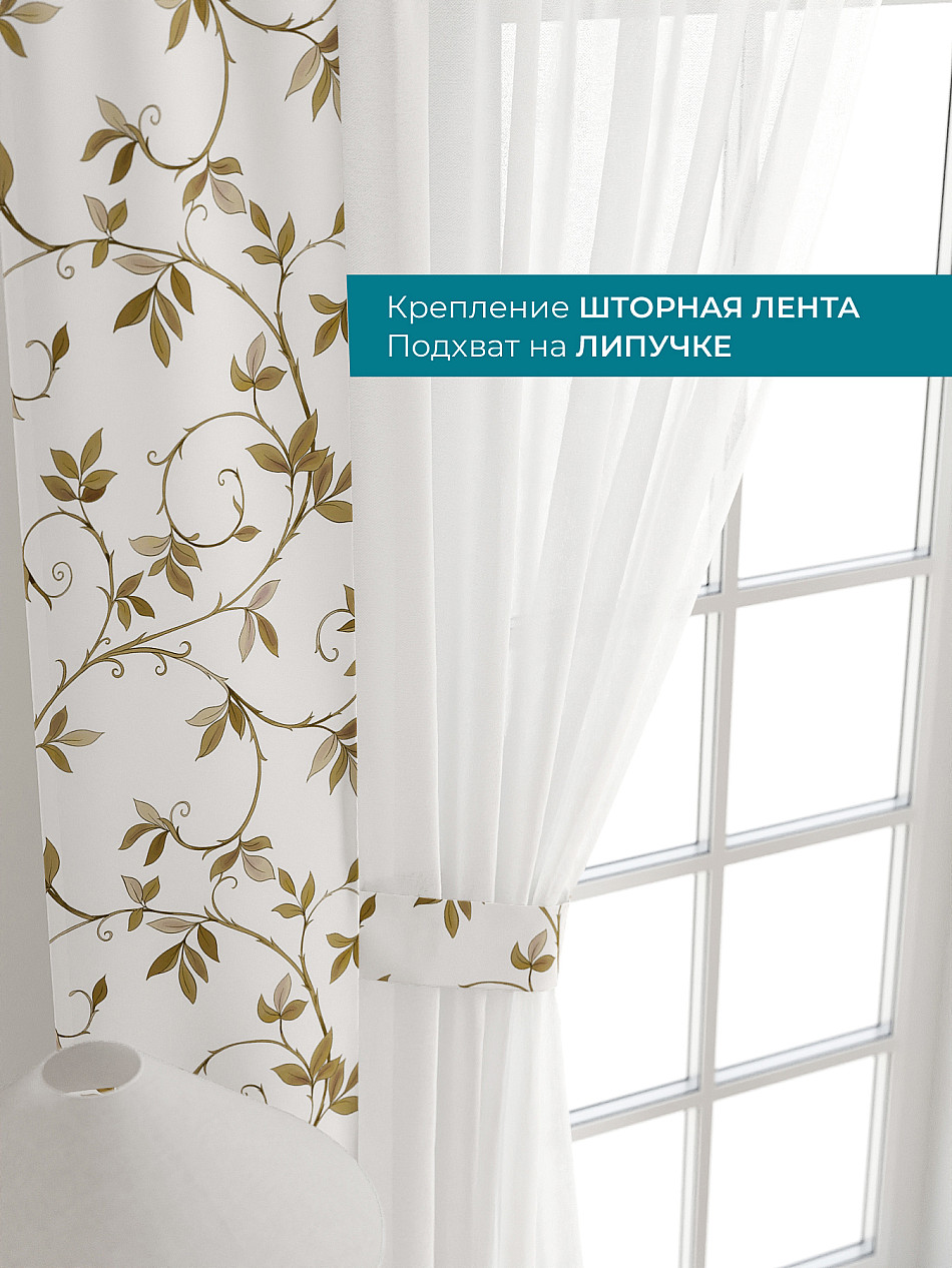 Декоративные подхваты 38х260 см — 2 шт.; Тюль 150х260 см — 2 шт. ( Изменить высоту) Крепление: шторная лента (крючки), кулиска Подробнее
