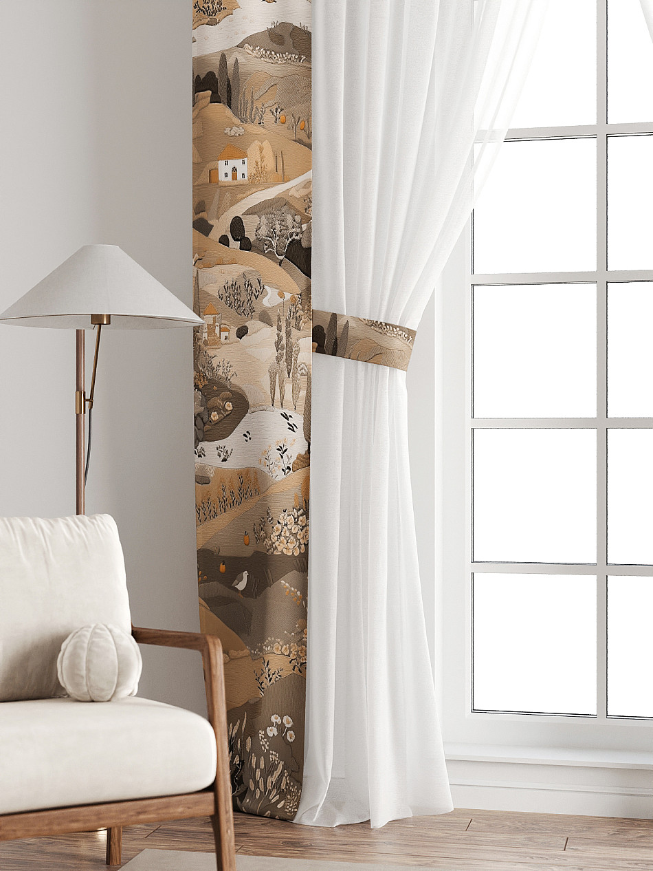 Комплект готов к развешиванию. По верхнему краю пристрочена шторная лента 6 см, с 2-мя рядами петель под крючки, что позволяет регулировать высоту. Одновременно имеется кулиска (карман для штанги), в которую можно продеть карниз любого диаметра.