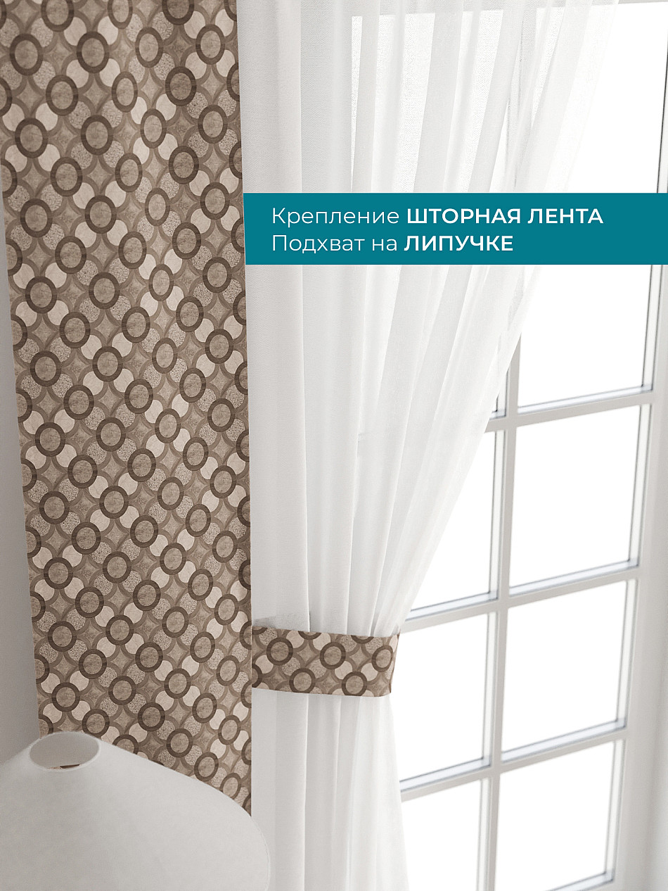 Декоративные подхваты 38х260 см — 2 шт.; Тюль 150х260 см — 2 шт. ( Изменить высоту) Крепление: шторная лента (крючки), кулиска Подробнее