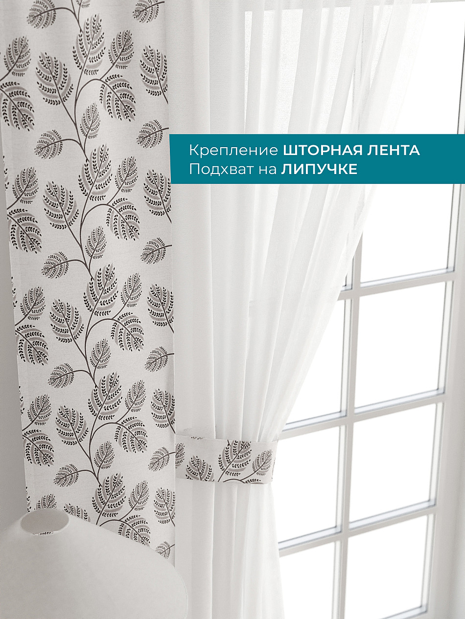 Декоративные подхваты 38х260 см — 2 шт.; Тюль 150х260 см — 2 шт. ( Изменить высоту) Крепление: шторная лента (крючки), кулиска Подробнее