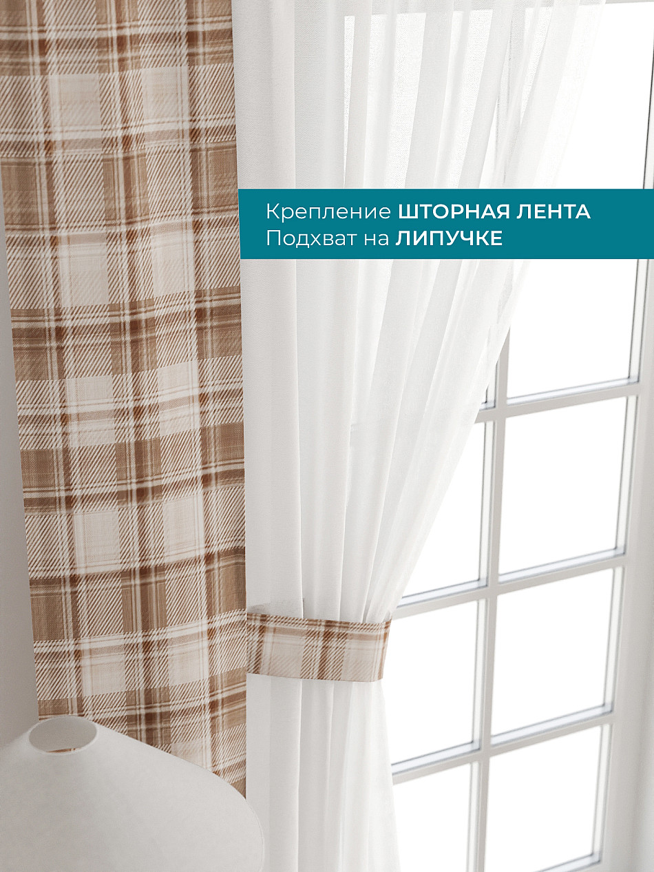 Декоративные подхваты 38х260 см — 2 шт.; Тюль 150х260 см — 2 шт. ( Изменить высоту) Крепление: шторная лента (крючки), кулиска Подробнее