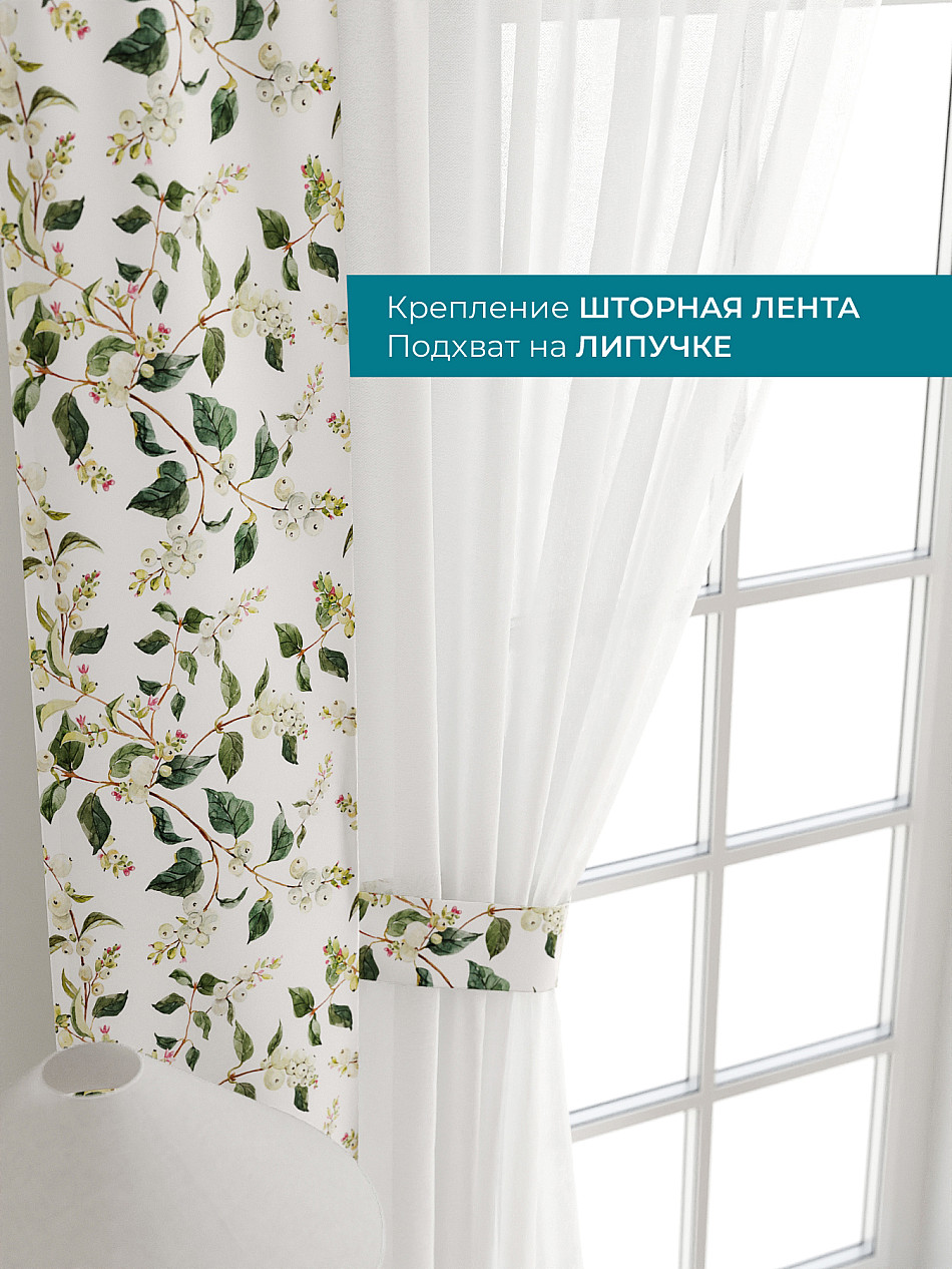 На высоте 125 см. пришит подхват (ширина 10 см.), который позволяет легко зафиксировать тюль или шторы в нужном положении при помощи липучки.