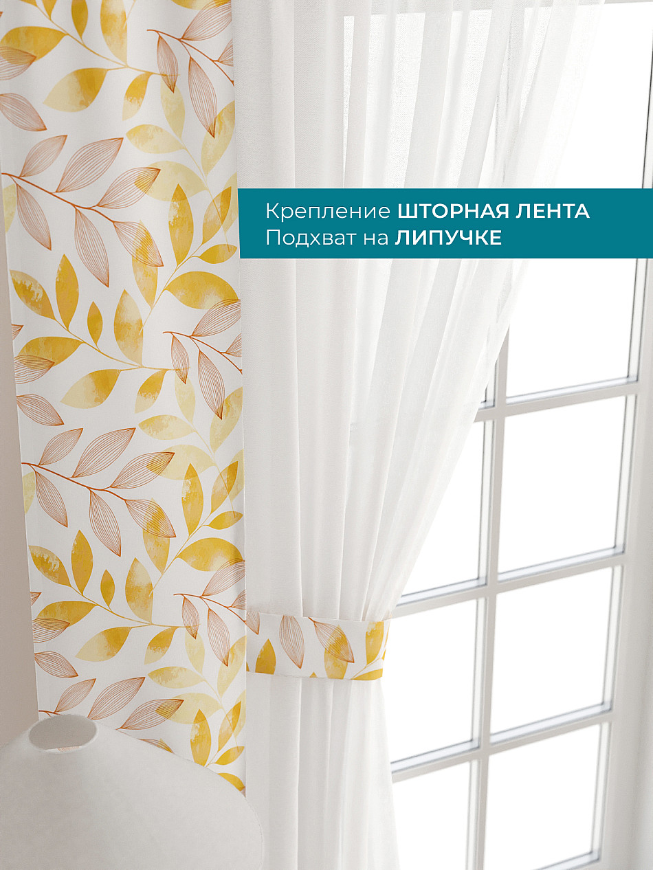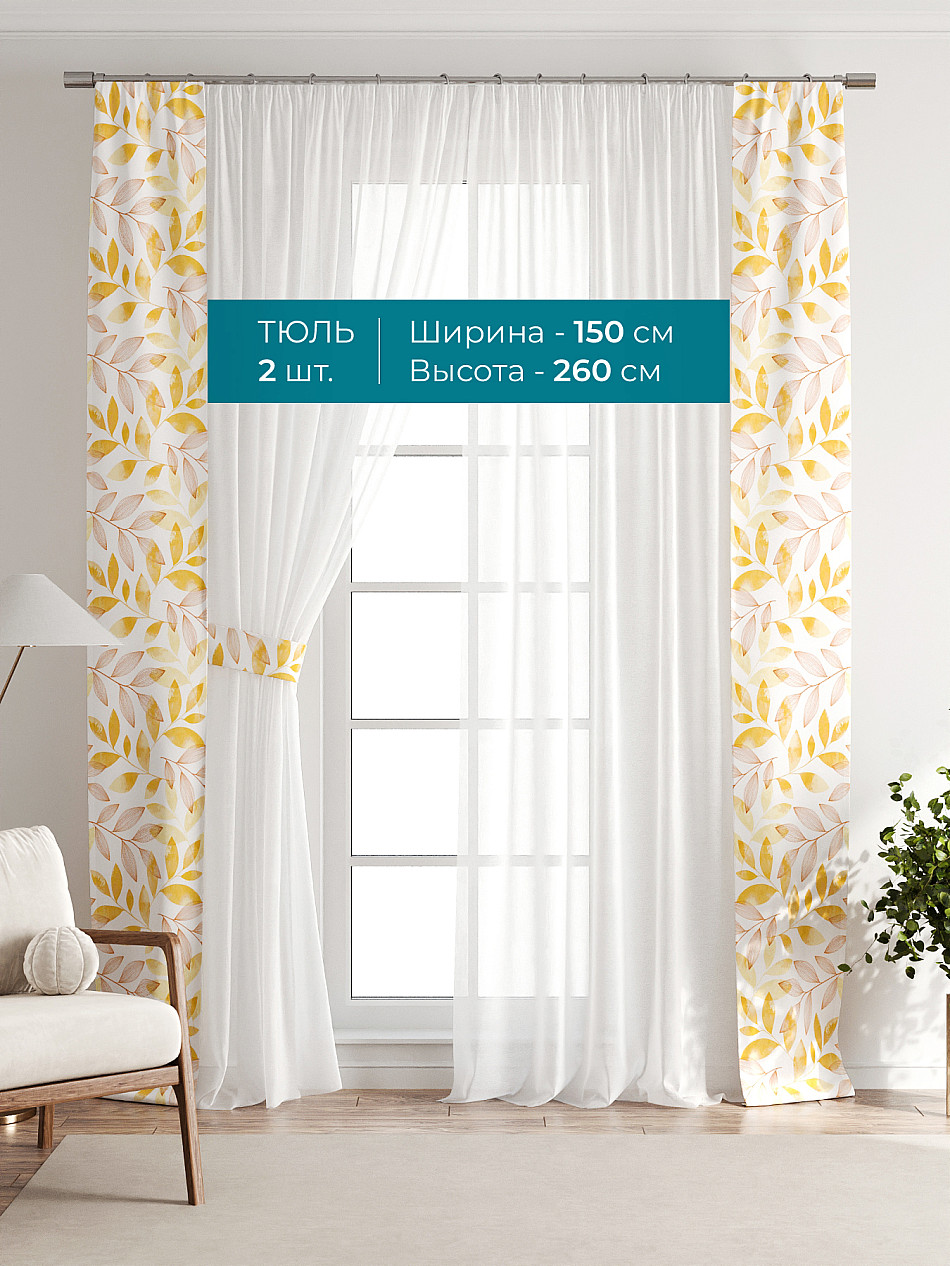 Декоративные подхваты 38х260 см — 2 шт.; Тюль 150х260 см — 2 шт. ( Изменить высоту) Крепление: шторная лента (крючки), кулиска Подробнее