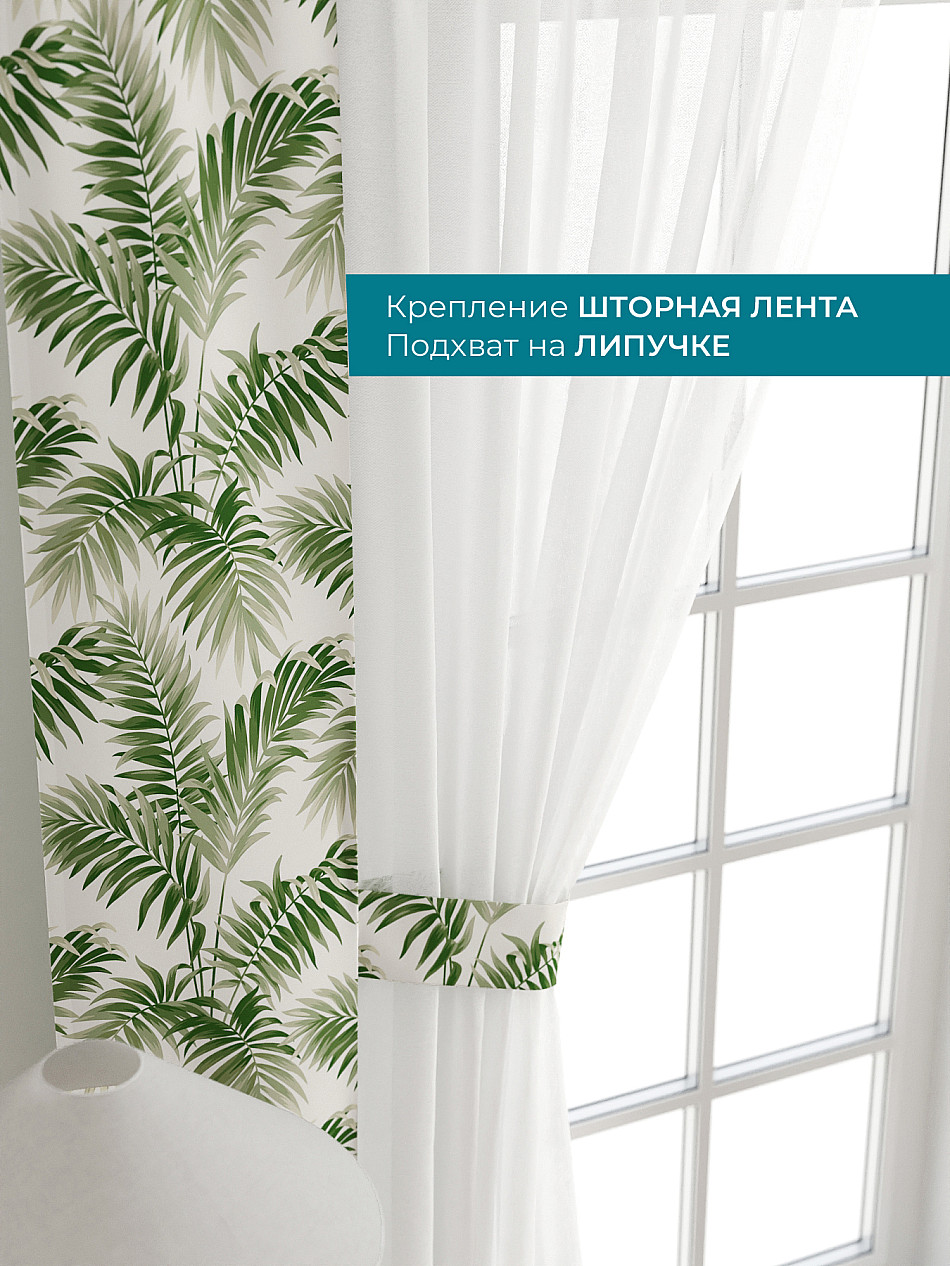 Декоративные подхваты 38х260 см — 2 шт.; Тюль 150х260 см — 2 шт. ( Изменить высоту) Крепление: шторная лента (крючки), кулиска Подробнее