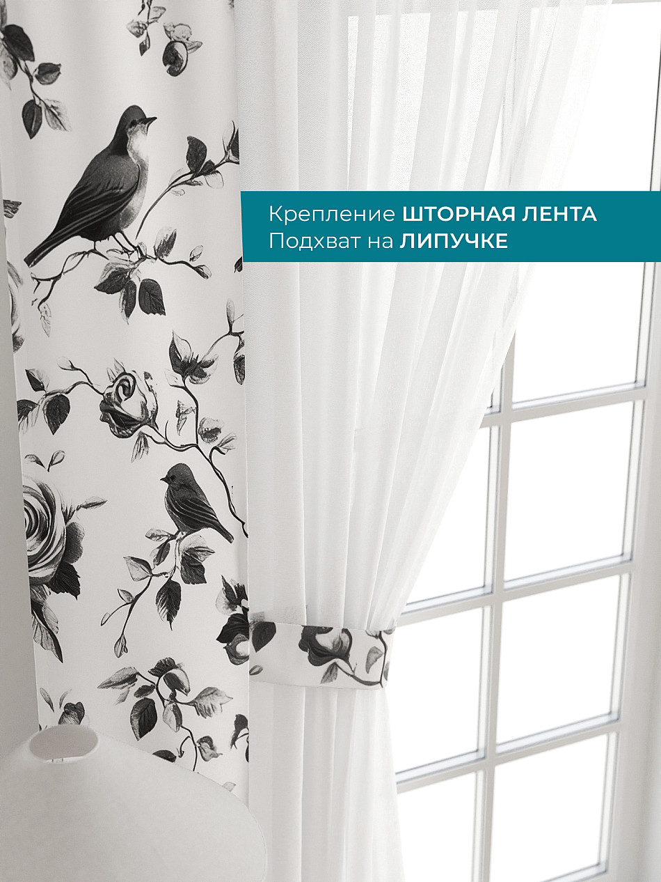 Декоративные подхваты 38х260 см — 2 шт.; Тюль 150х260 см — 2 шт. ( Изменить высоту) Крепление: шторная лента (крючки), кулиска Подробнее