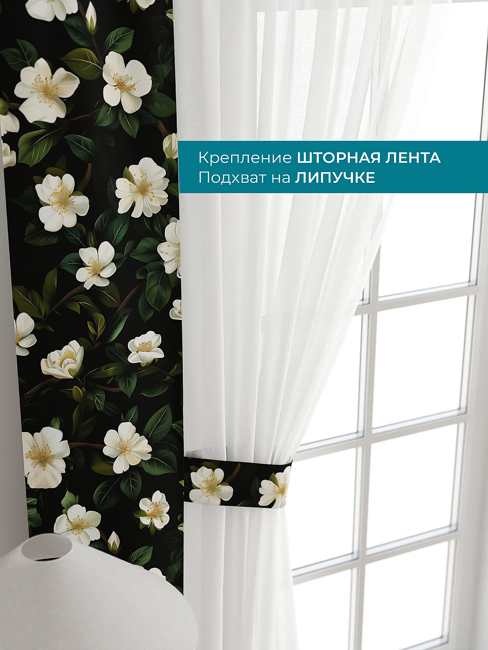 Комплект готов к развешиванию. По верхнему краю пристрочена шторная лента 6 см, с 2-мя рядами петель под крючки, что позволяет регулировать высоту. Одновременно имеется кулиска (карман для штанги), в которую можно продеть карниз любого диаметра.