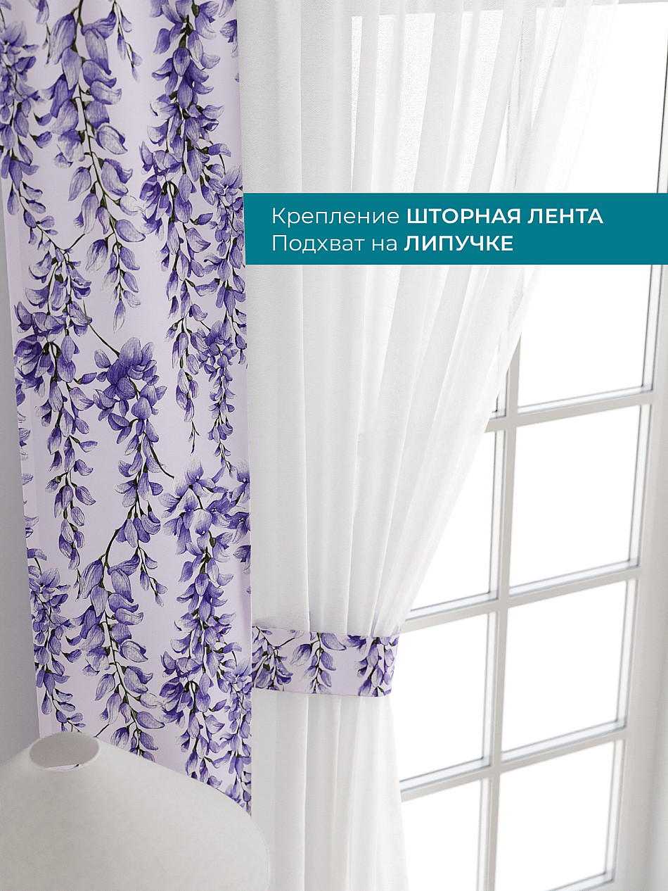 Декоративные подхваты 38х260 см — 2 шт.; Тюль 150х260 см — 2 шт. ( Изменить высоту) Крепление: шторная лента (крючки), кулиска Подробнее