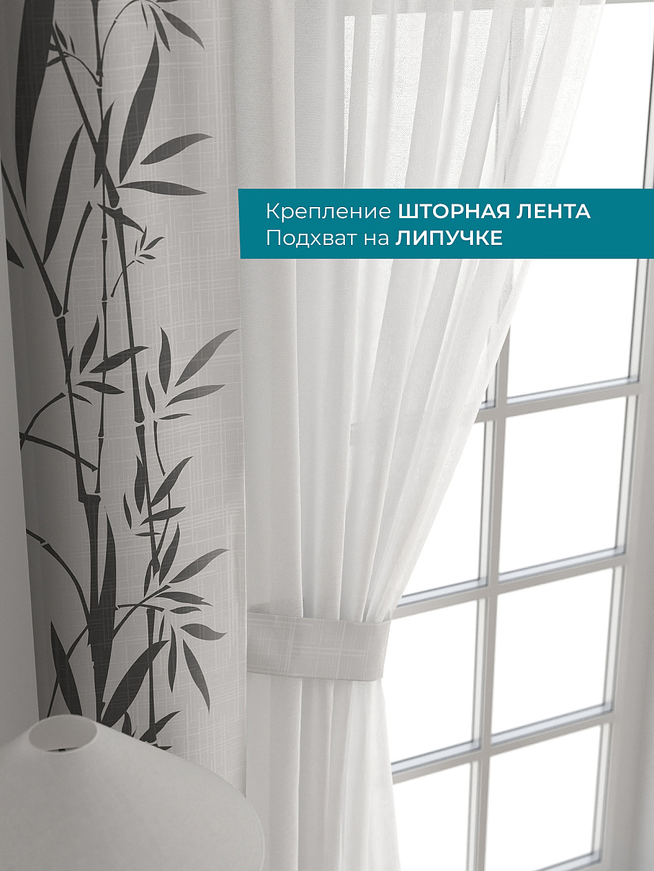 Декоративные подхваты 38х260 см — 2 шт.; Тюль 150х260 см — 2 шт. ( Изменить высоту) Крепление: шторная лента (крючки), кулиска Подробнее