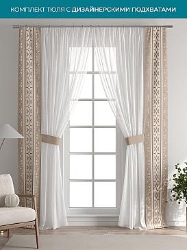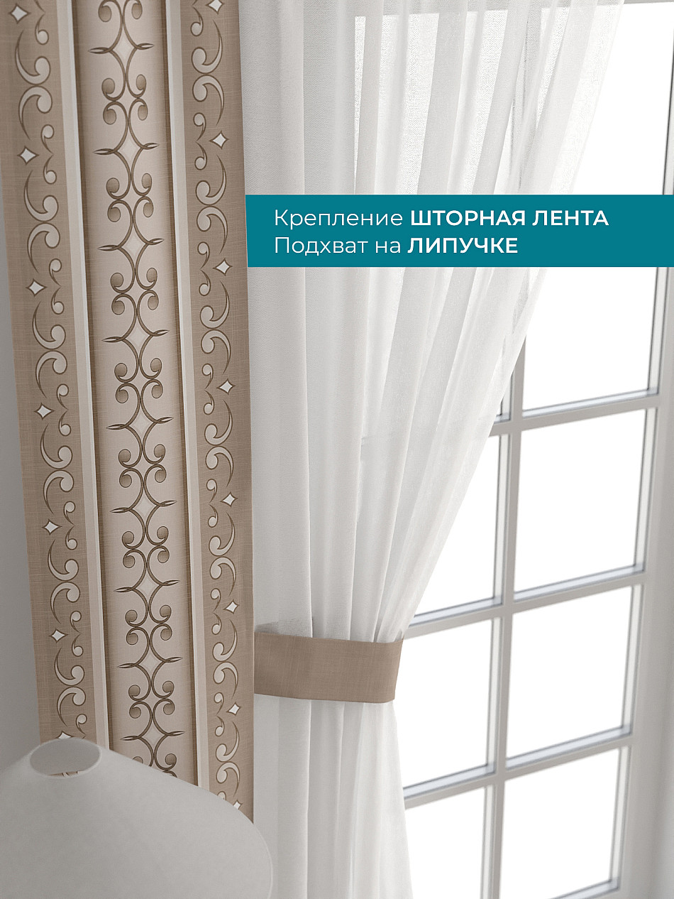 Декоративные подхваты 38х260 см — 2 шт.; Тюль 150х260 см — 2 шт. ( Изменить высоту) Крепление: шторная лента (крючки), кулиска Подробнее