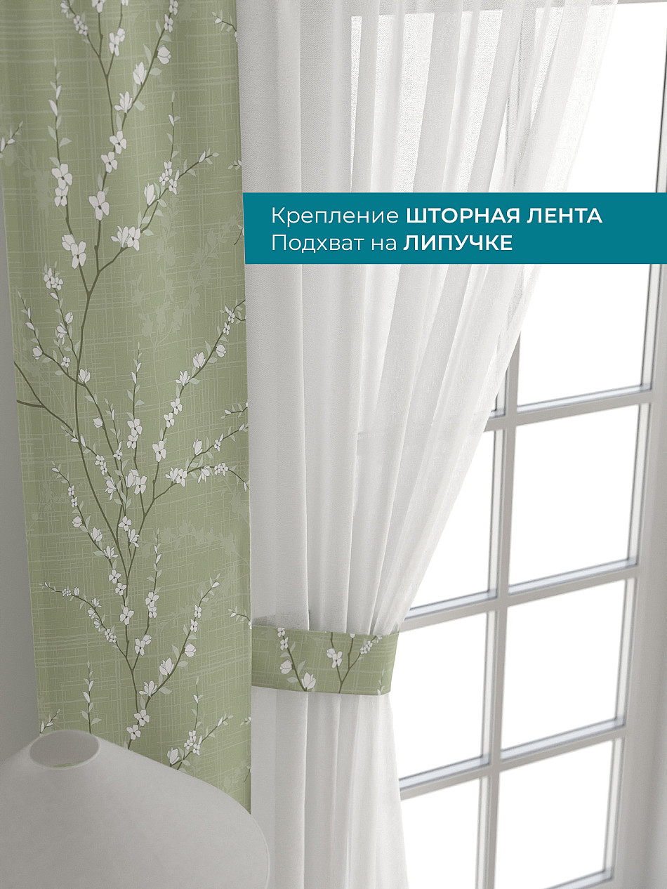На высоте 125 см. пришит подхват (ширина 10 см.), который позволяет легко зафиксировать тюль или шторы в нужном положении при помощи липучки.