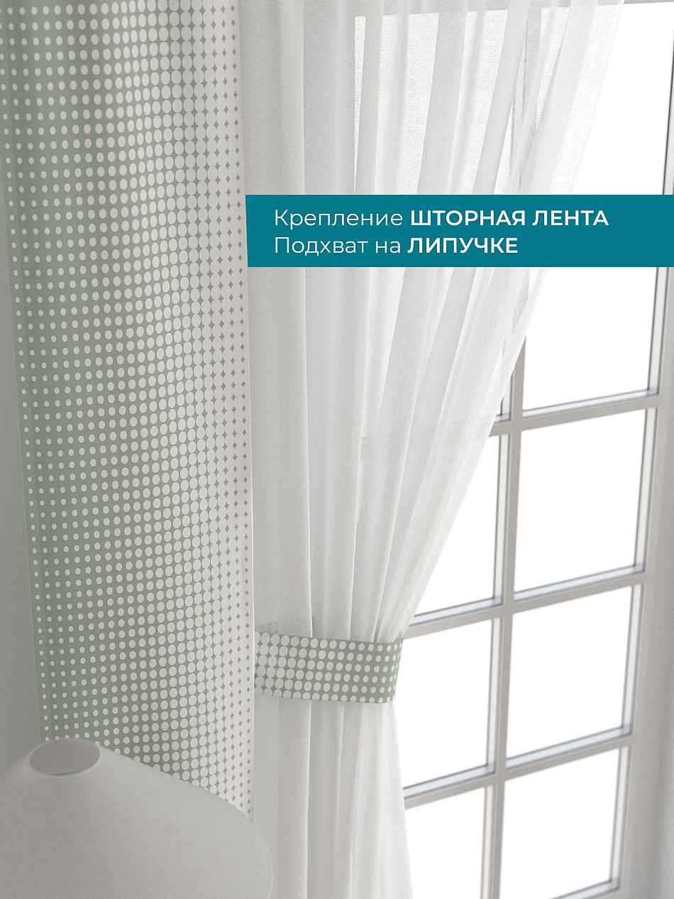 Декоративные подхваты 38х260 см — 2 шт.; Тюль 150х260 см — 2 шт. ( Изменить высоту) Крепление: шторная лента (крючки), кулиска Подробнее
