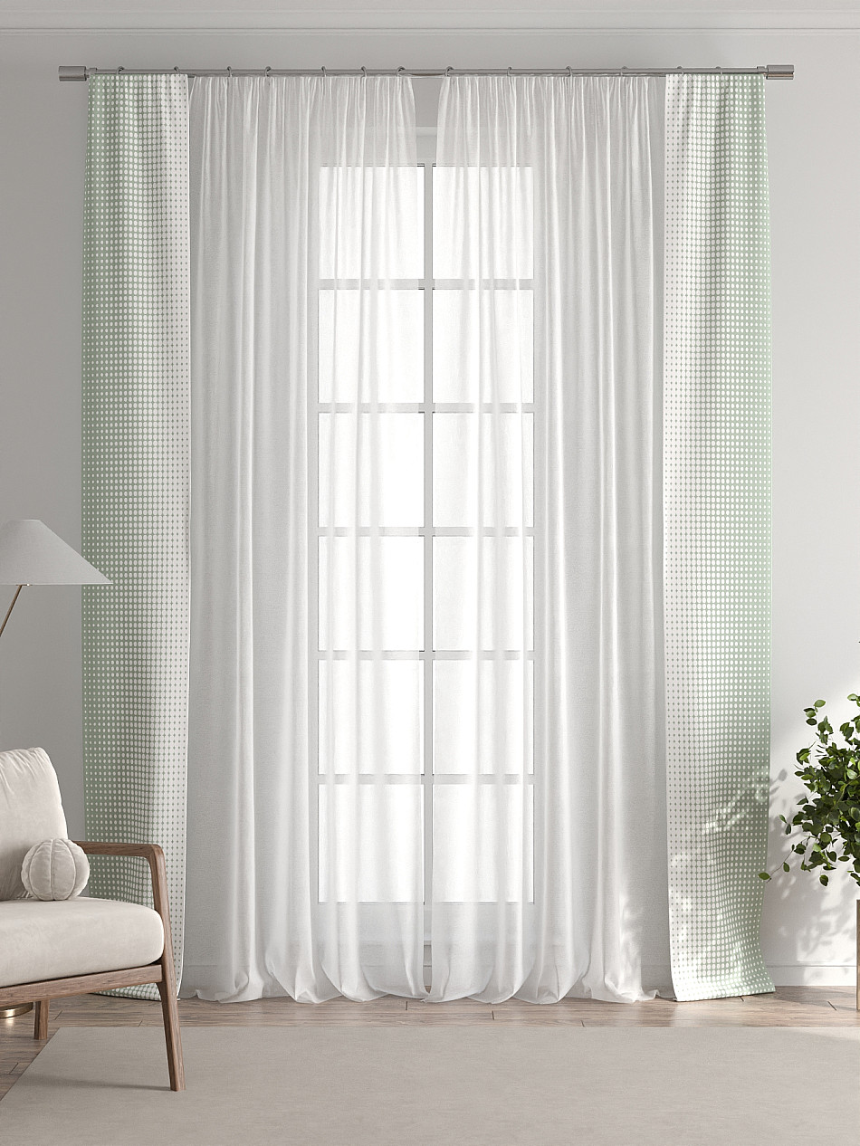 Представляем вам абсолютно новый подход к оформлению окна! Наш комплект белого тюля с узкими цветными шторами-подхватами станет идеальным решением для тех, кто любит, чтобы в комнате было светло и при этом хочет добавить цветовой акцент в интерьер комнаты.