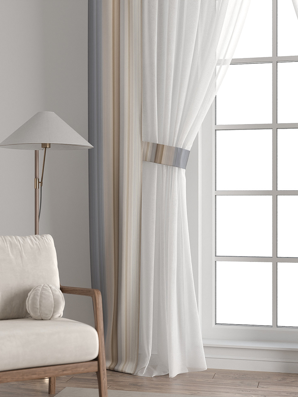 Представляем вам абсолютно новый подход к оформлению окна! Наш комплект белого тюля с узкими цветными шторами-подхватами станет идеальным решением для тех, кто любит, чтобы в комнате было светло и при этом хочет добавить цветовой акцент в интерьер комнаты.