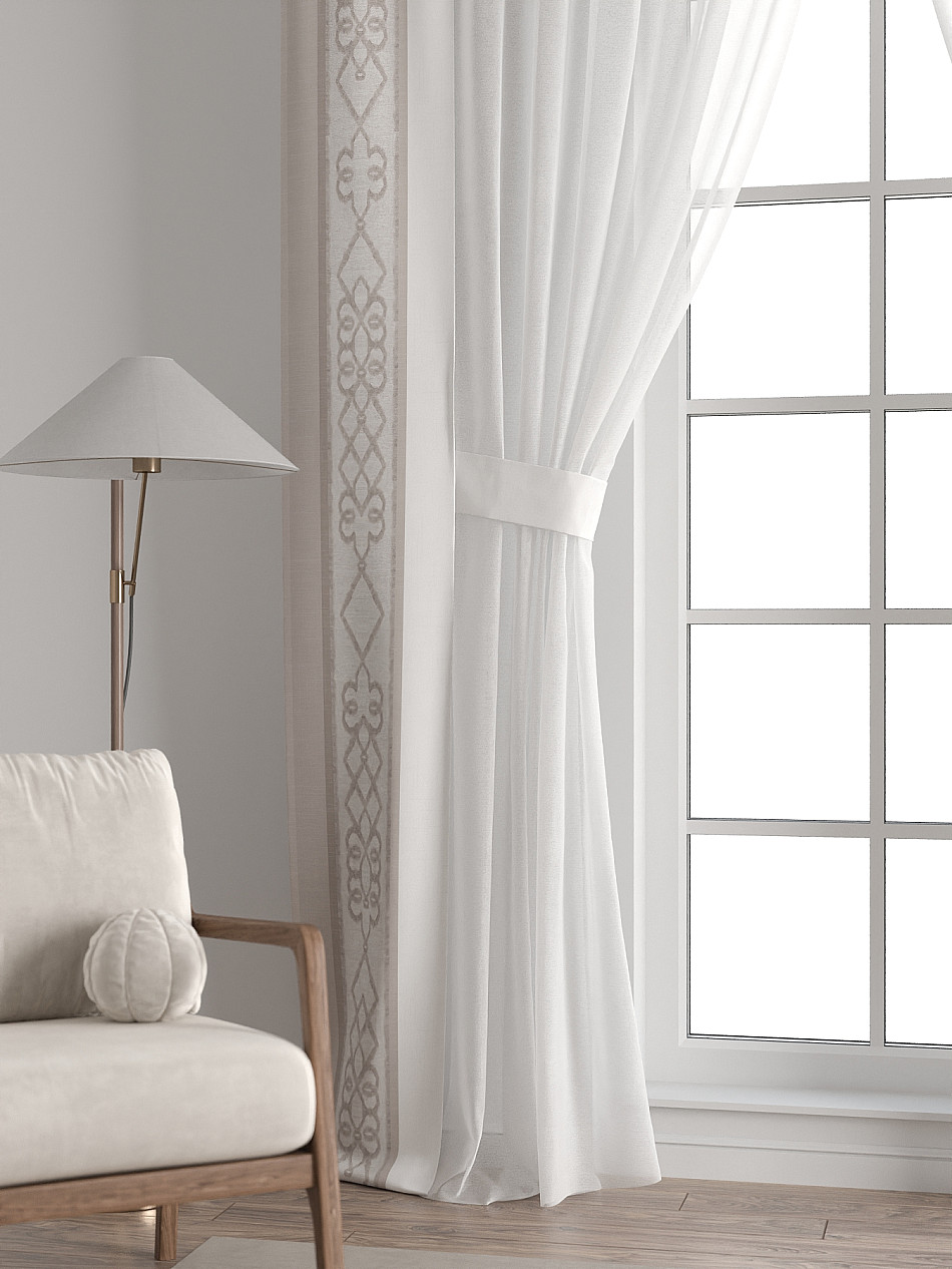 Представляем вам абсолютно новый подход к оформлению окна! Наш комплект белого тюля с узкими цветными шторами-подхватами станет идеальным решением для тех, кто любит, чтобы в комнате было светло и при этом хочет добавить цветовой акцент в интерьер комнаты.