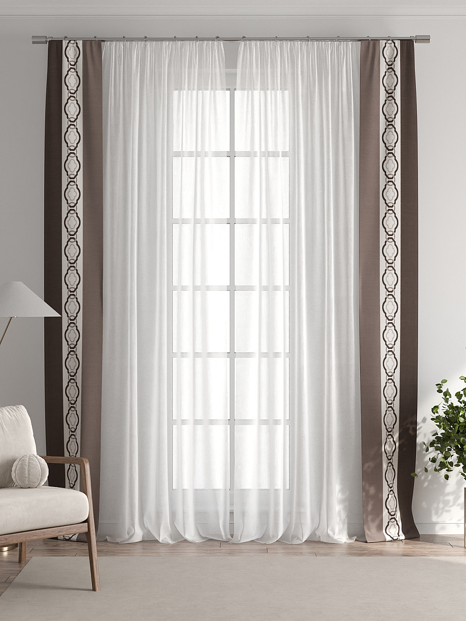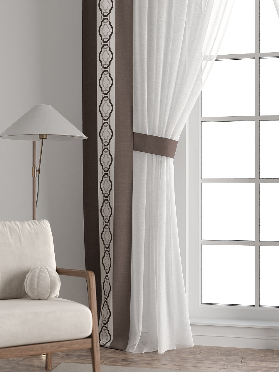 Представляем вам абсолютно новый подход к оформлению окна! Наш комплект белого тюля с узкими цветными шторами-подхватами станет идеальным решением для тех, кто любит, чтобы в комнате было светло и при этом хочет добавить цветовой акцент в интерьер комнаты.